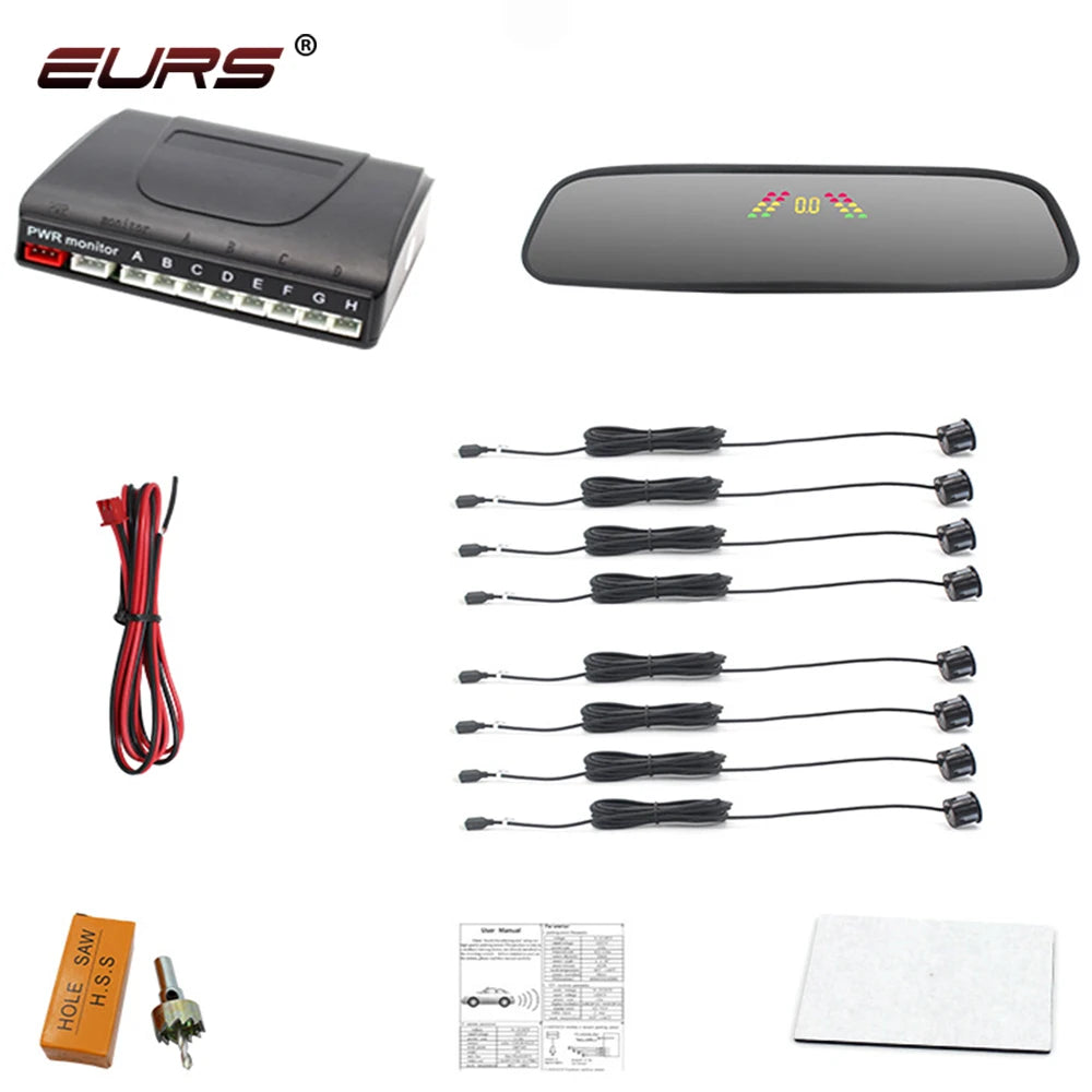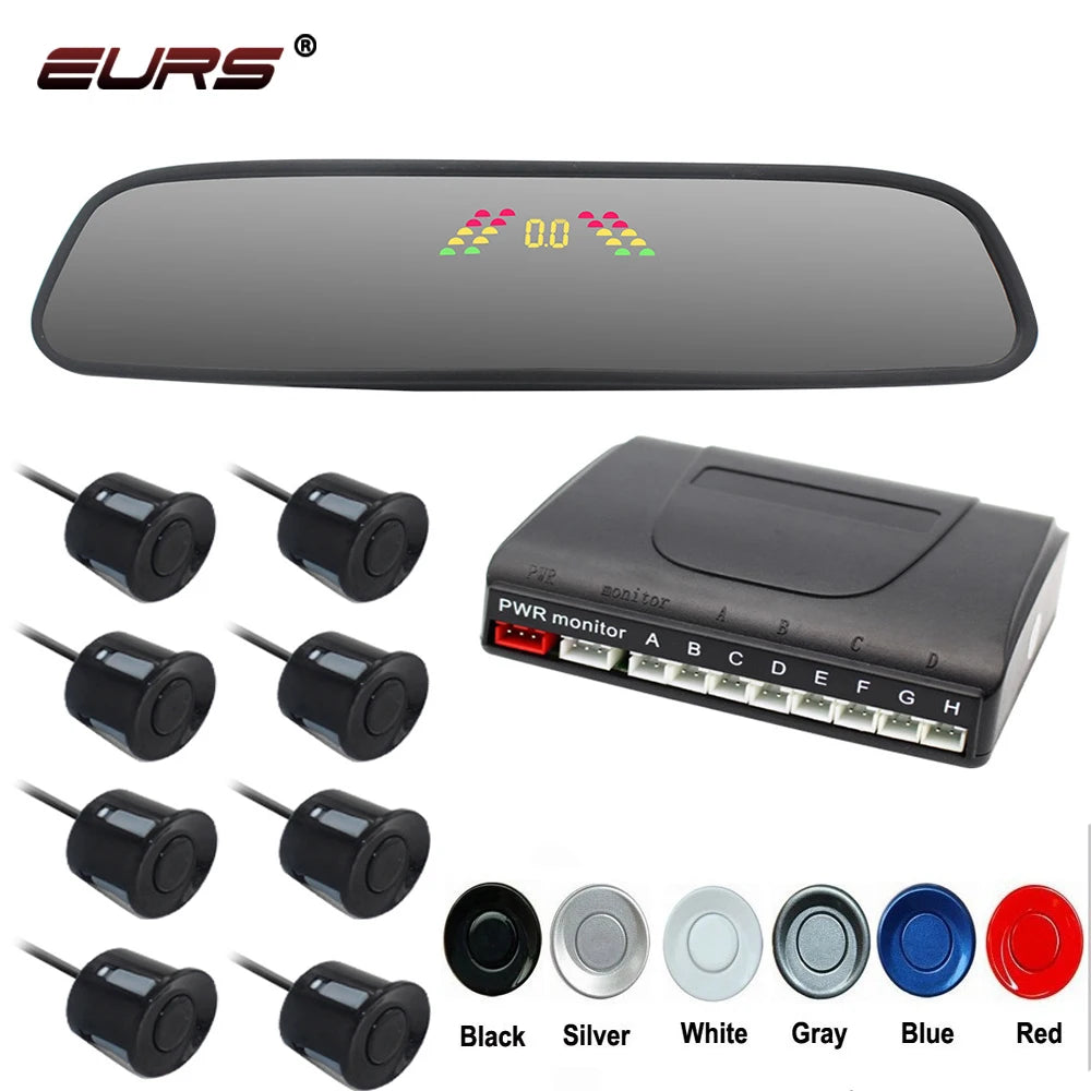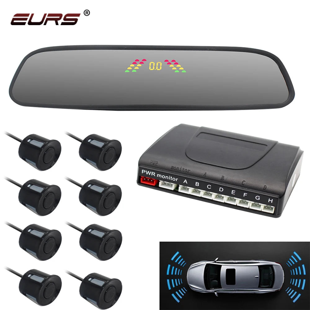 8 sensors Car parking Radar system Parktronic Rearview Universal car Mirror Reversing Front and Rear Detection Alarm rearview