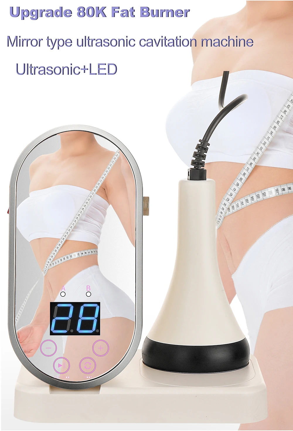 2 in 1 80KHz Ultrasonic Cavitation Weight Loss Machine Ultrasound Body Massage Fat Reduce Slimming Tool LED Therapy With Mirror