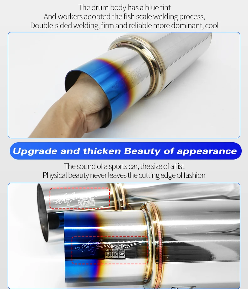 Sports Car Exhaust HKS Muffler Stainless Steel Pipe System Tail Tip Silencer
