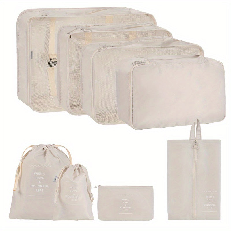 ** MORE SOPHISTICATED MAKEUP BAG & SHOE BAG: Our packing bag set includes a new stylish makeup bag, with mesh on the one side, breathable and good to view your items, a new shoes bag, convenient to store and keep your shoes in your travel.