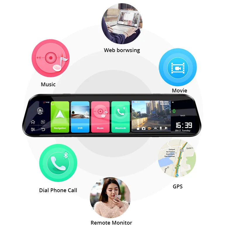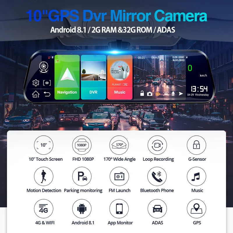 Display Size: 10 Inch IPS Touch screen 4G Android Dash Camera