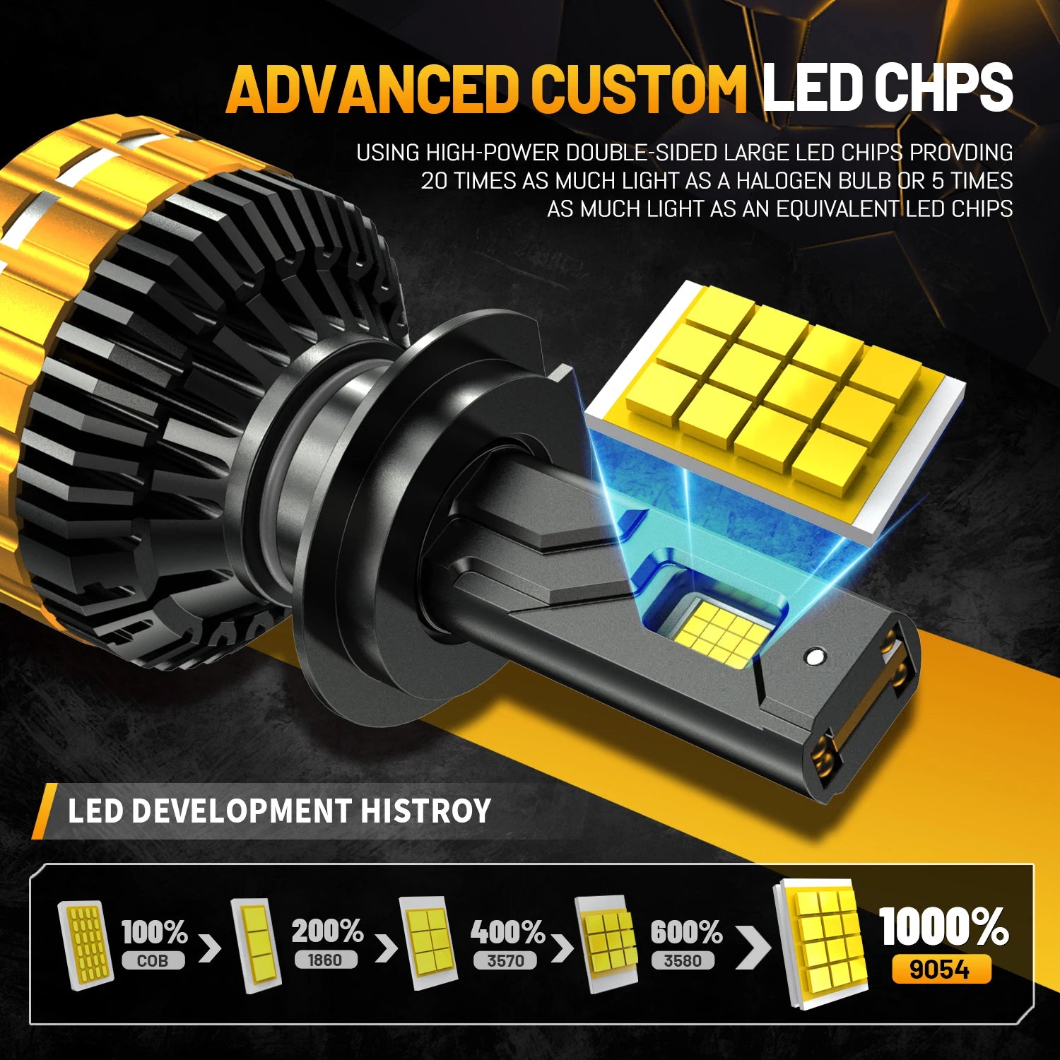 ②[High brightness]: Double-sided 30pcs 9054 laser lamp beads, 5mm chip ultra-thin design, high luminous flux, uniform light pattern, perfect and super focused beam, no black spots or fog, super bright light center, Provides a wider lighting angle and a longer lighting range without affecting oncoming vehicles.