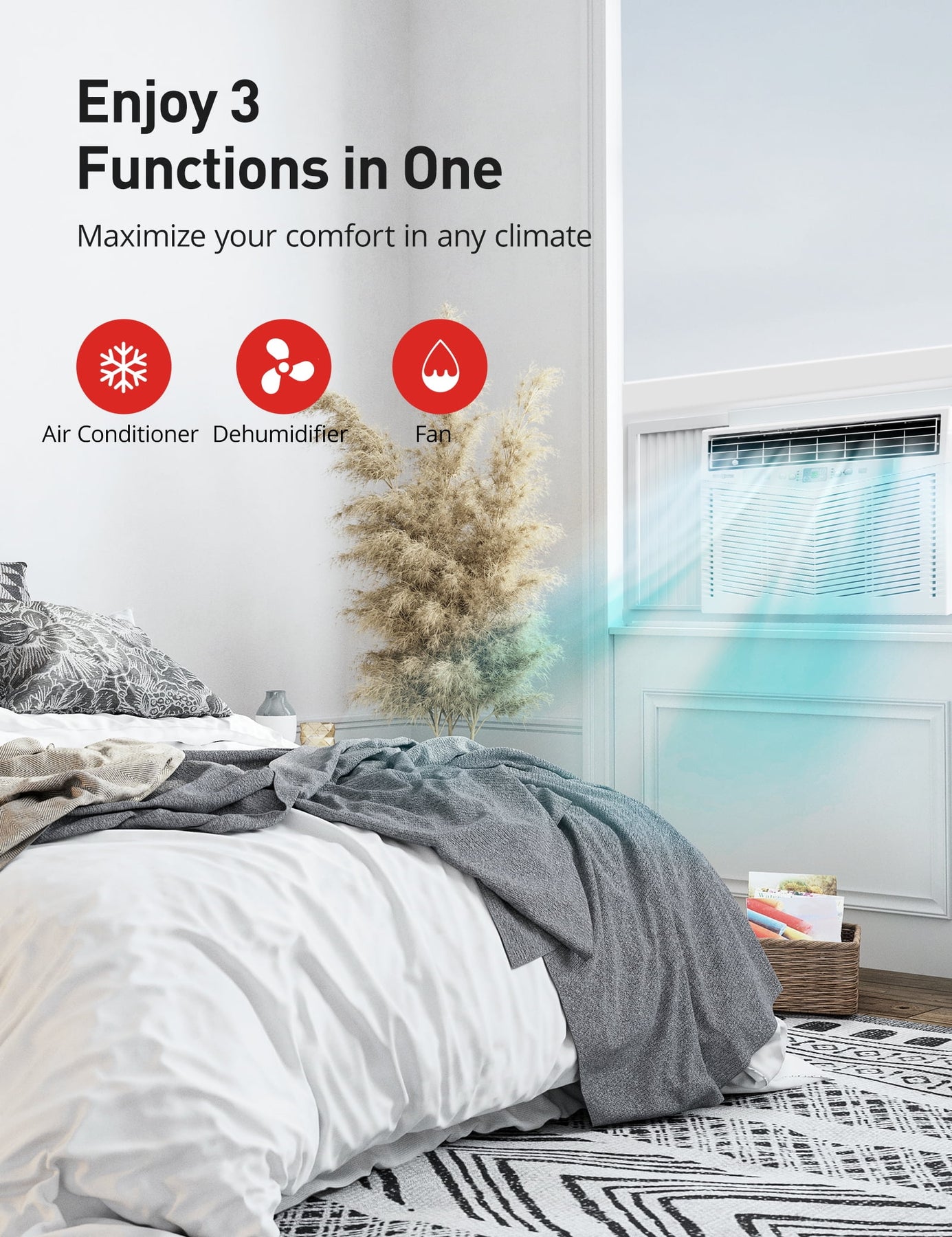 - Maximum Cooling Comfort: Window-mounted AC delivers 10200 BTU cooling capacity to cool rooms up to 460sq.ft. in minutes, such as a living room, dining room, bedroom, storage room, etc.