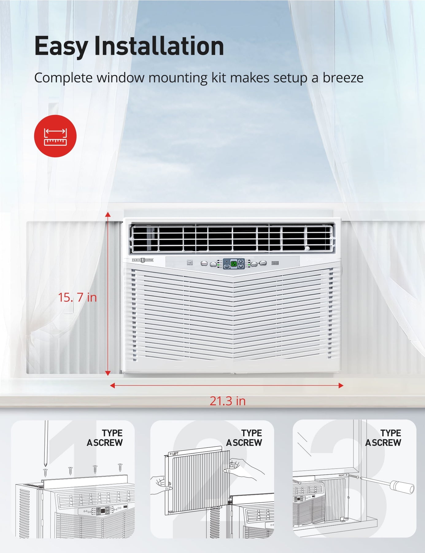 - Extremely Quiet: Unlike standard window AC units, the Paris Rhône air conditioner uses 2 independent motors for incredibly quiet operation without sacrificing performance
