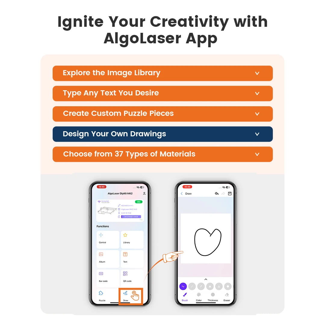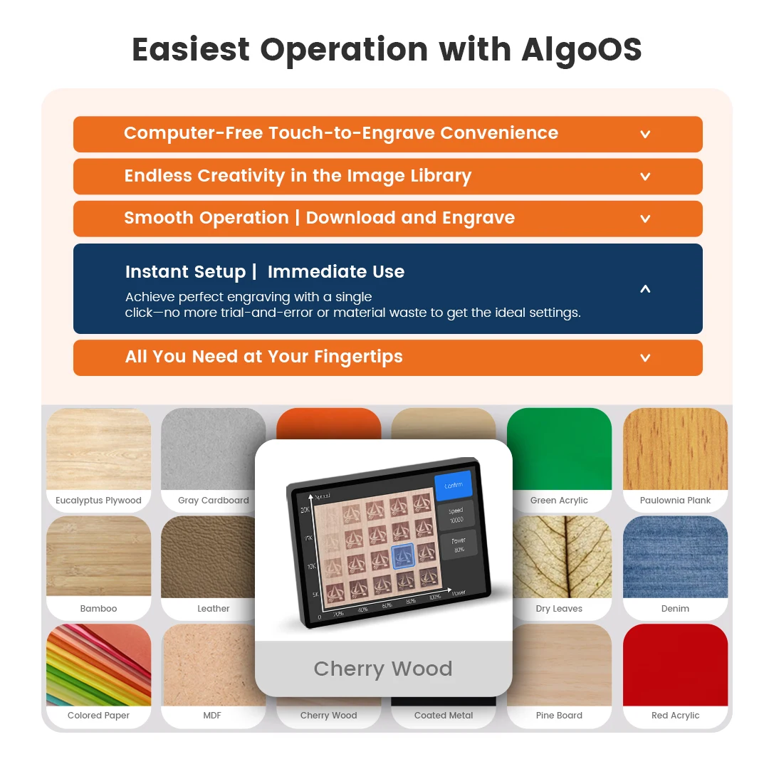 Cutting Material: Paper Board, KT Board/Wood/MDF/Stainless steel/steel plate/Bamboo/Paper/Cloth/Denim/Leather/Acrylic(Except clear acrylic)