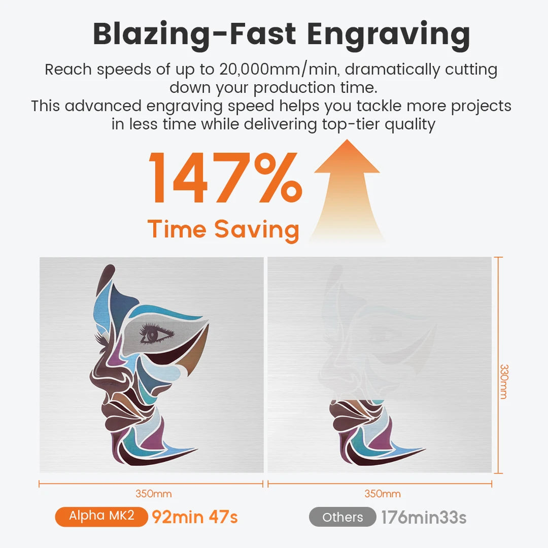 Super powerful 20W laser module handles various material thicknesses for cutting easily.