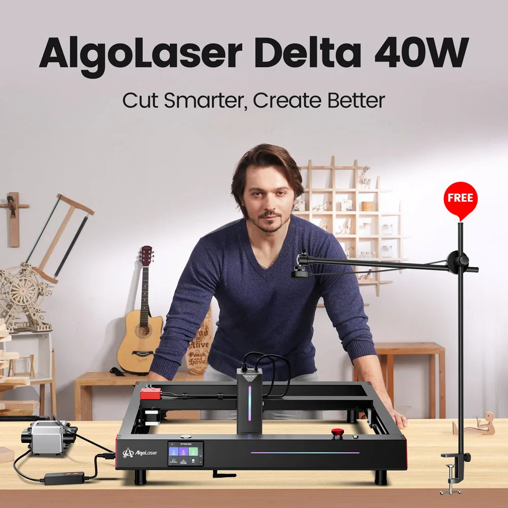 AlgoLaser Delta 40W Smart Printer With Camera Off-line Woodwork Laser Engraver Cutter Wood Acrylic Glass Engraving Cut Machine