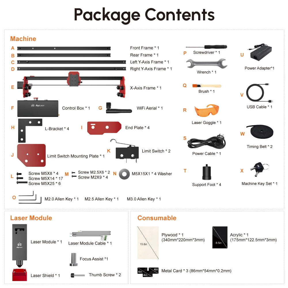 Control Software: LaserGRBL (free), LightBurn (Paid Software), Wifi APP