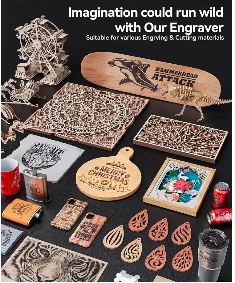 Ultrafine Laser Point & Powerful Laser Module - Comes with the latest FAC laser technology for compressed laser point, 0.08 x 0.08mm point size, super concentrated energy can make carving or cutting more solid. The output power of the laser module reaches 10W.