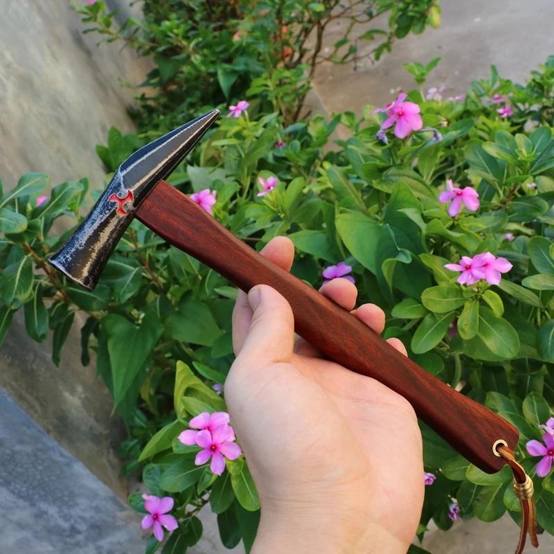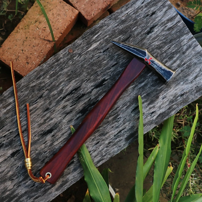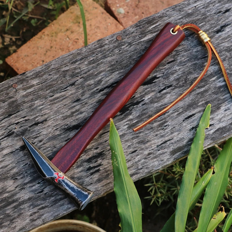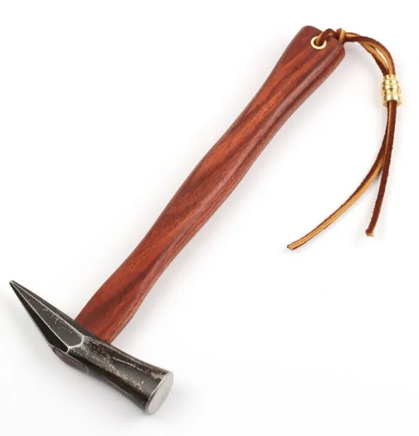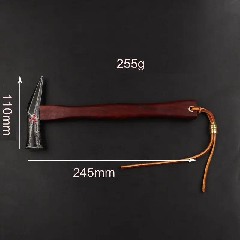 The hammer head is made of S55 High Carbon steel with solid Padouk wood handle . Hardness about HRC54. Total Length about 245mm Weight about 255g Height: 110mm Solid wood handle: Padouk wood Hammer Head: S55 High Carbon Steel Hardness: HRC54