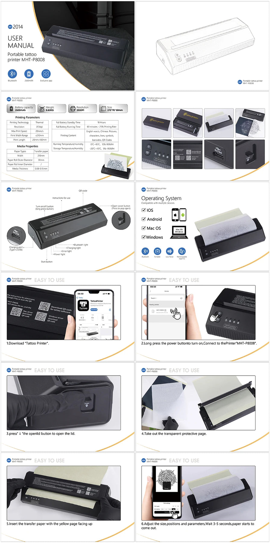 Tattoo paper uses the most economical thermal technology, you only need to refill A4 thermal paper, no ink cartridges, no ribbons.