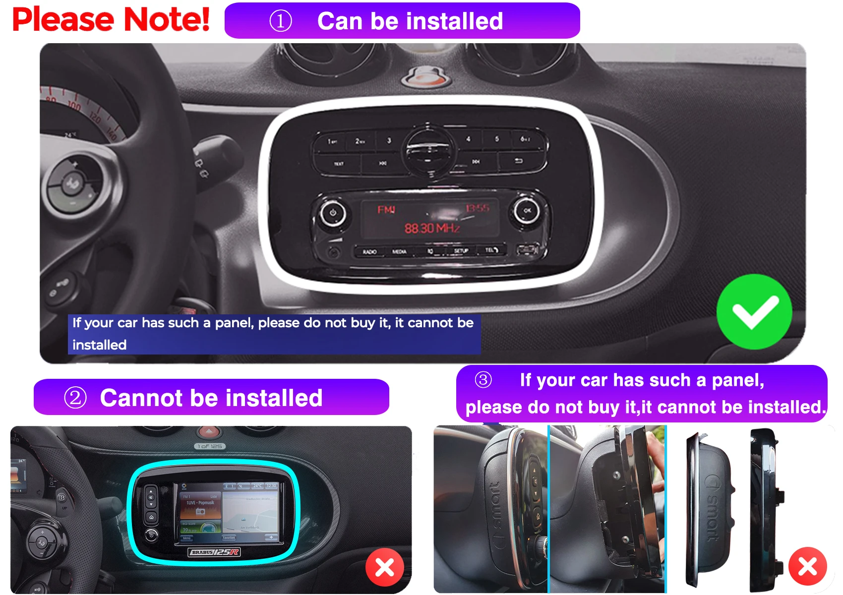 Item Size: For Mercedes Smart 453 Fortwo 2014-2020