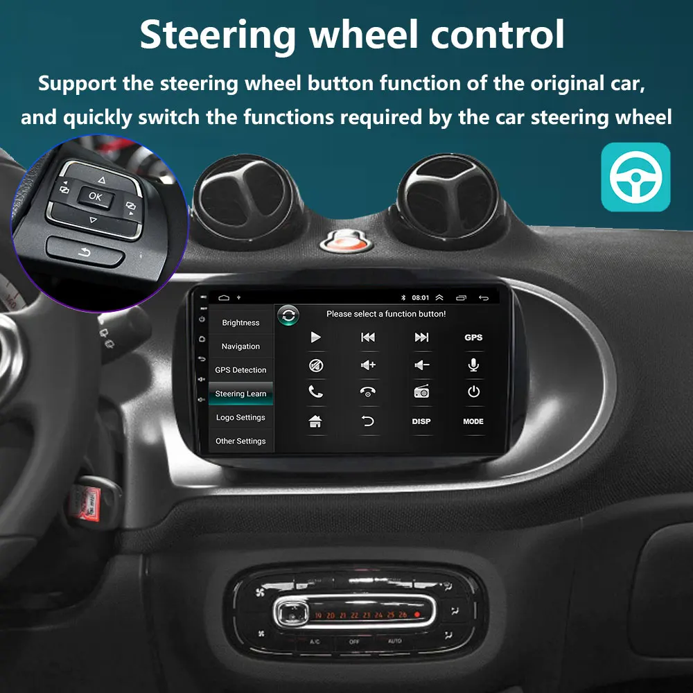 Support the steering wheel button function of the original car, and quickly switch the functions required by the car steering wheel