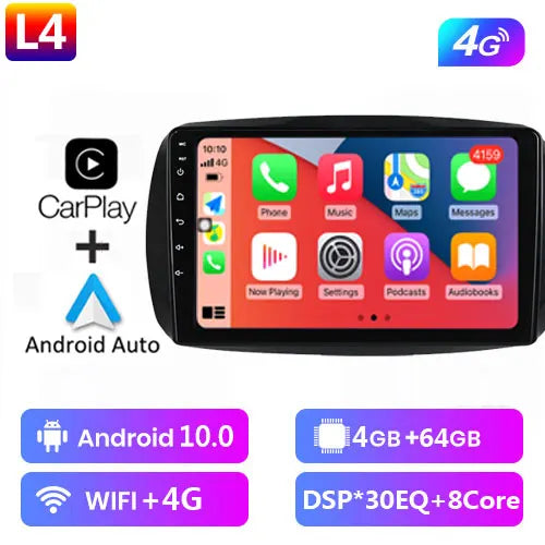 2DIN 8+128G Car radio Android multimedia player Carplay Auto GPS navigation for Mercedes Benz Smart 453 Fortwo 2014