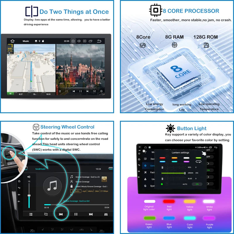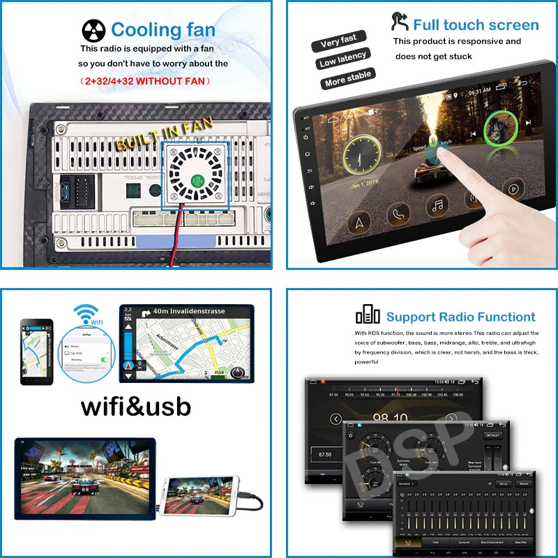 Built-in DSP,the sound is more stereo.This radio can adjust the voice of subwoofer, bass, bass, midrange, alto,