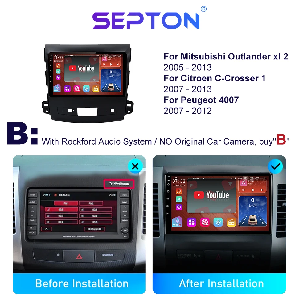 Model: For Mitsubishi Outlander xl 2 2005 - 2013 For Citroen C-Crosser 1 2007 - 2013 For Peugeot 4007 2007 - 2012