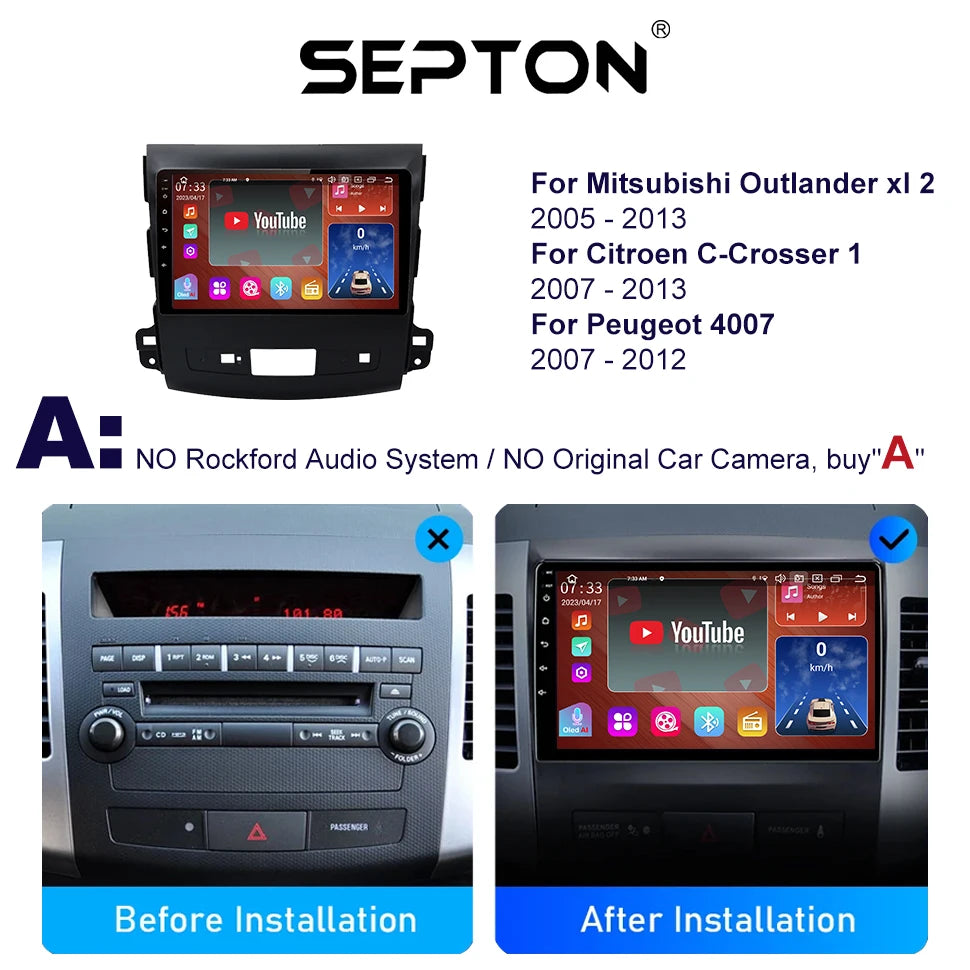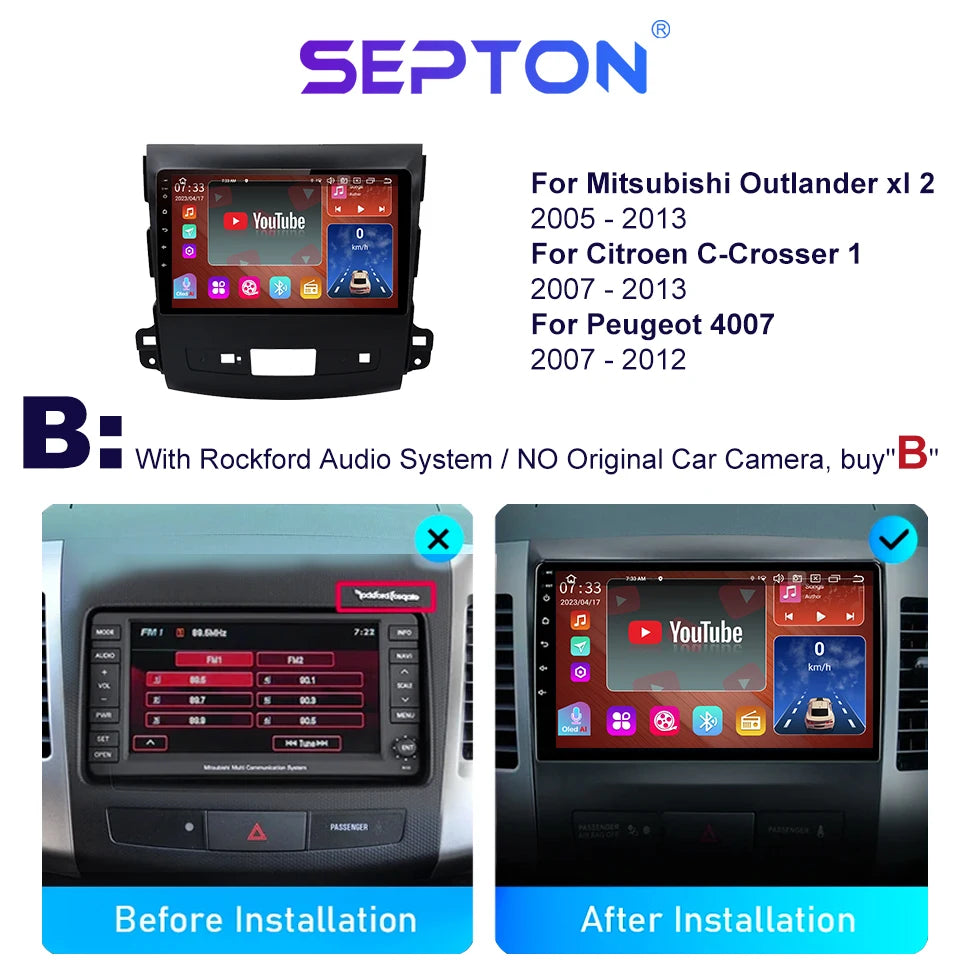 Android Auto Radio for Mitsubishi Outlander Xl 2 2005-2013 for Citroen C-Crosser 1 2007-2013 for Peugeot 4007 2007-2012 Car Radio