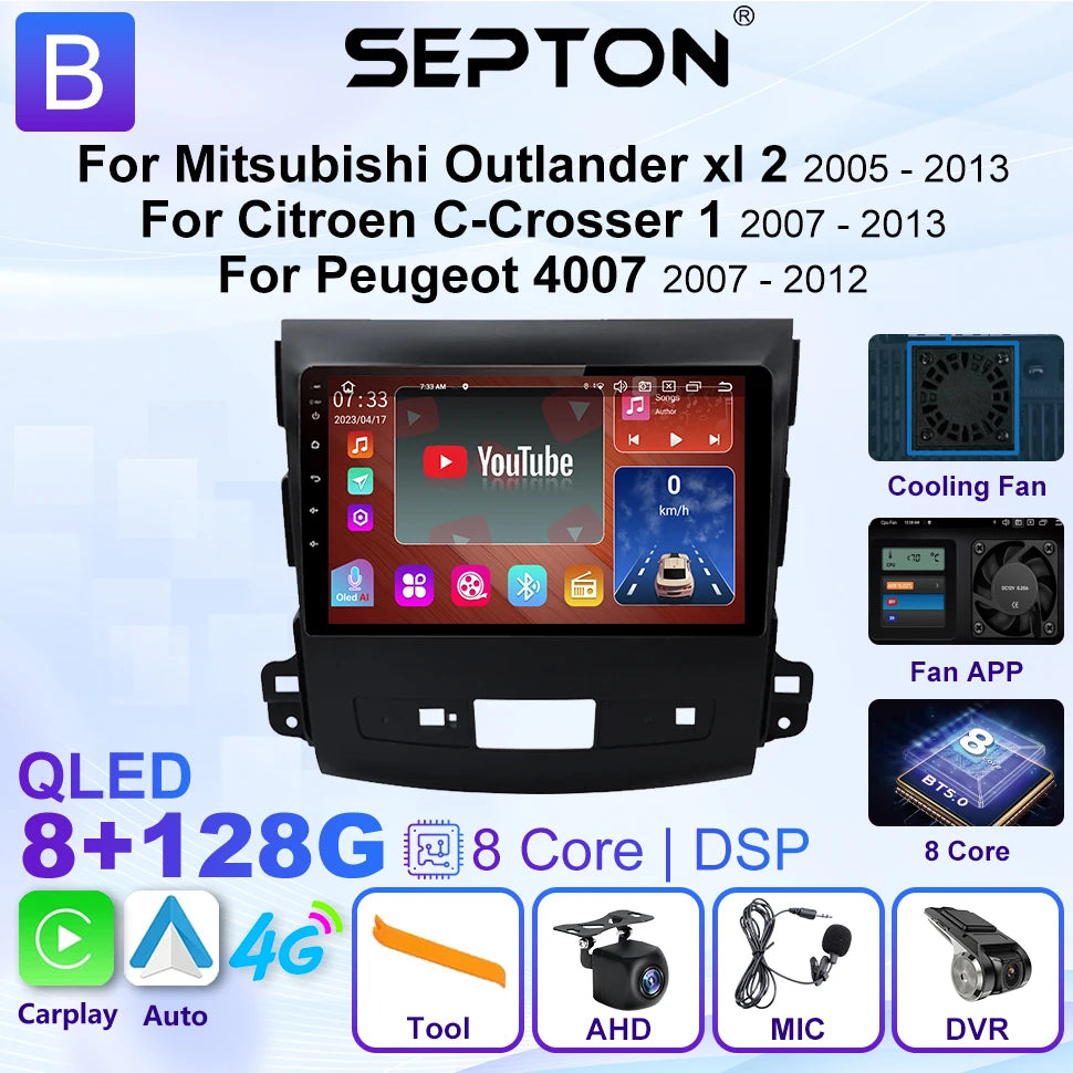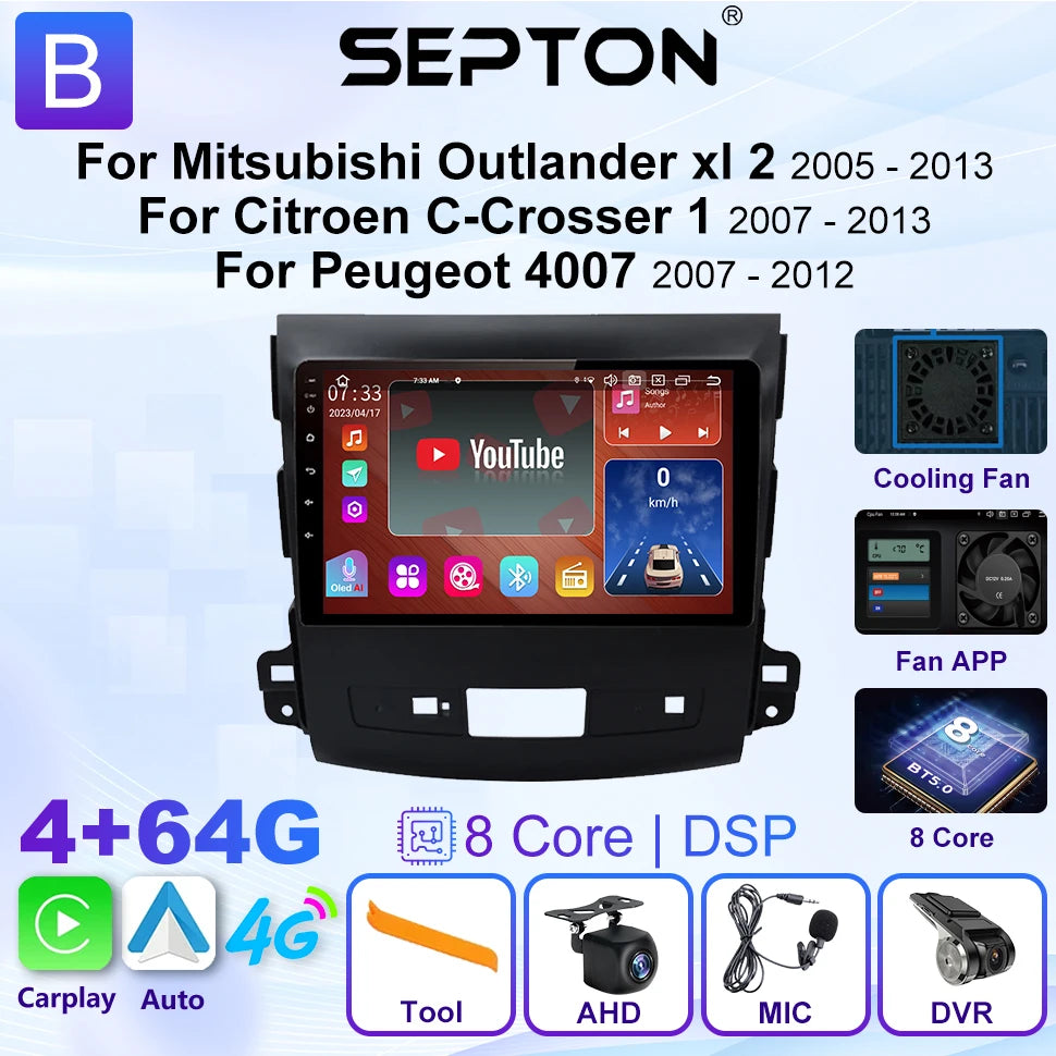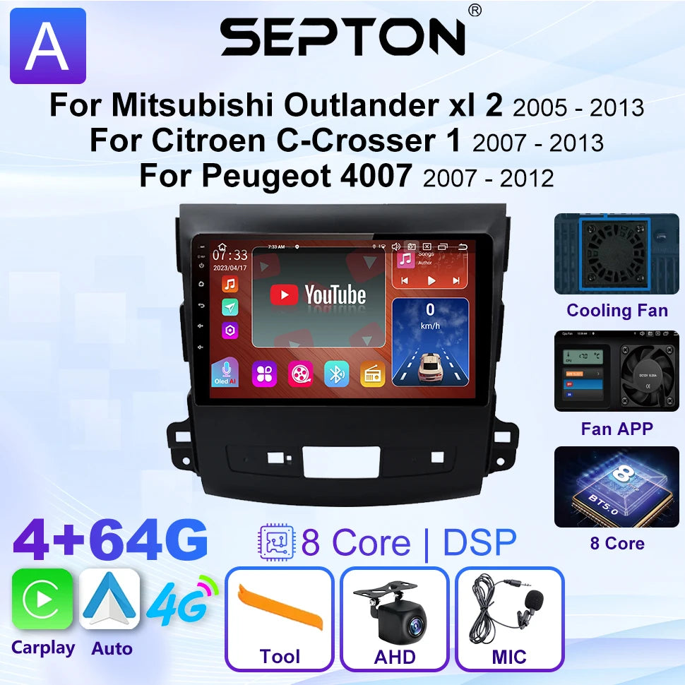 Android Auto Car Radio for Mitsubishi Outlander Xl 2 2005-2013 for Citroen C-Crosser 1 2007-2013 for Peugeot 4007 2007-2012 GPS