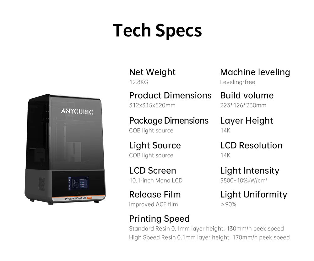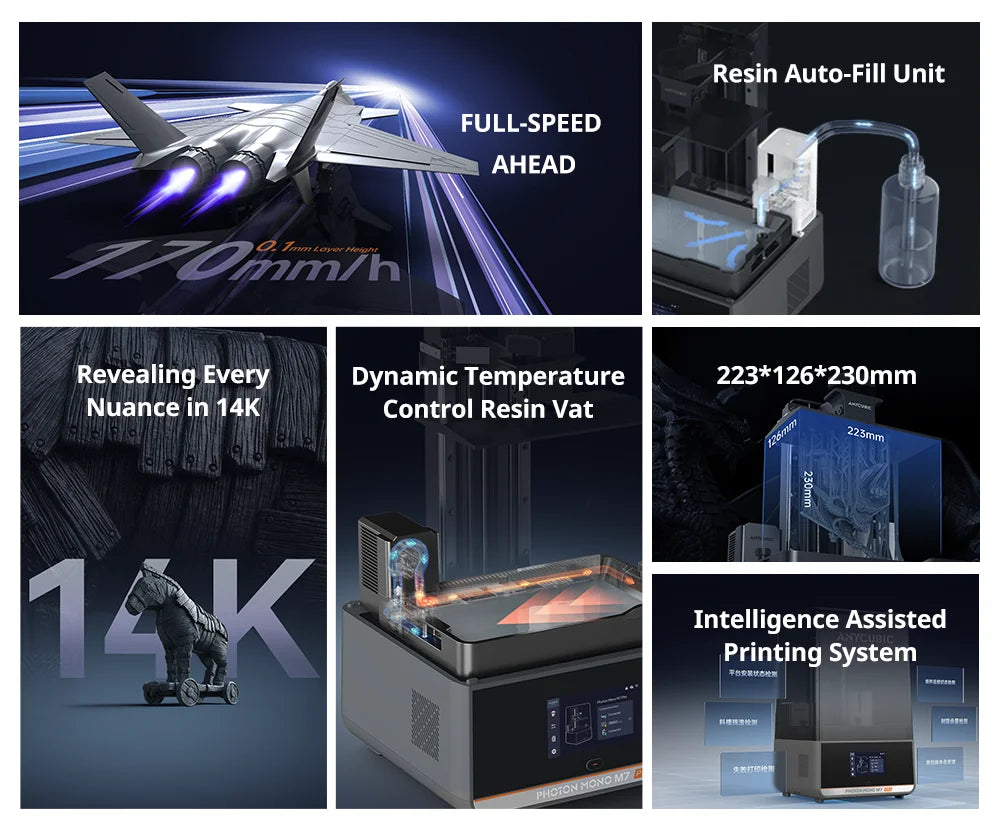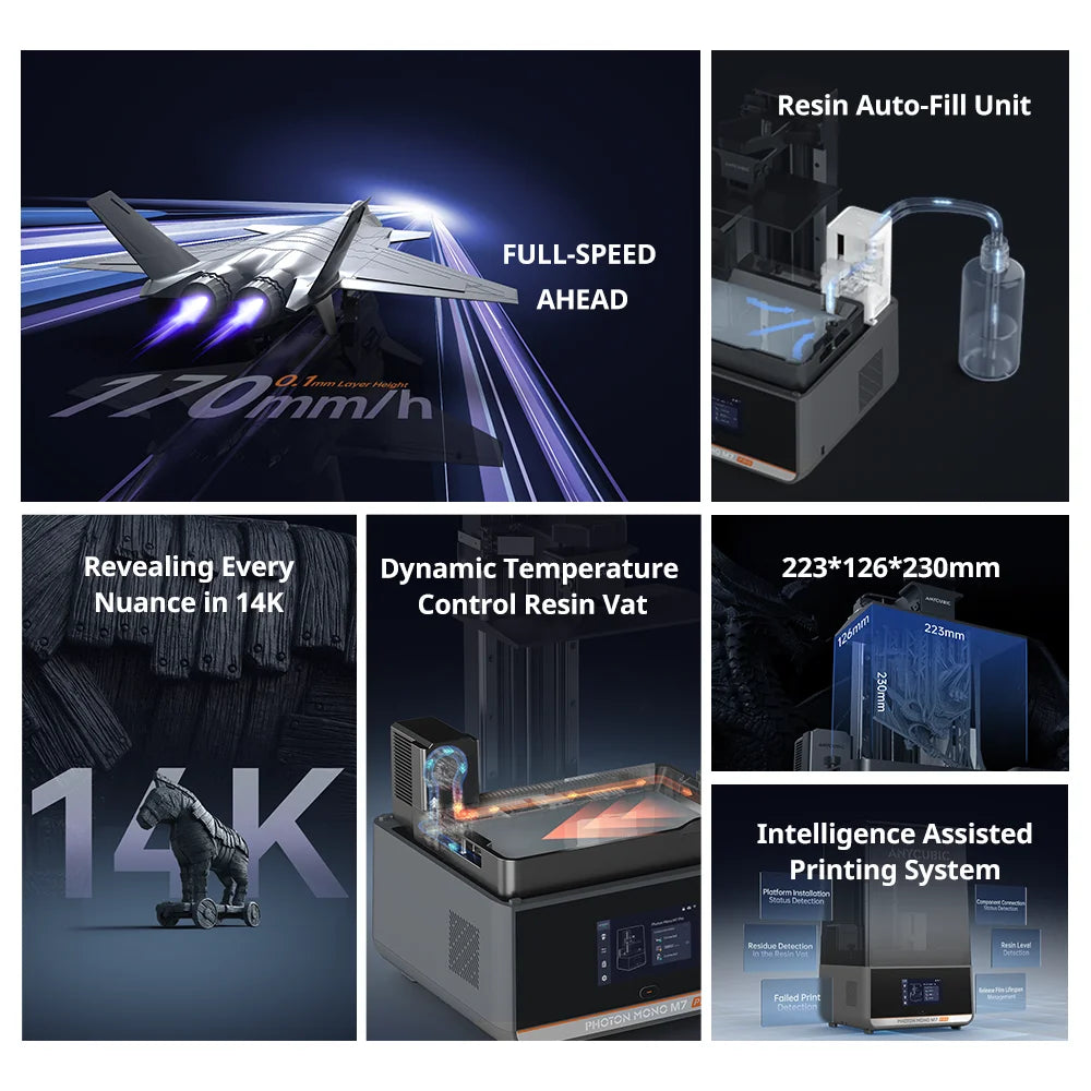 Photon Mono M7 Pro has a build volume of 223*126*230mm, providing ample space for your creativity.