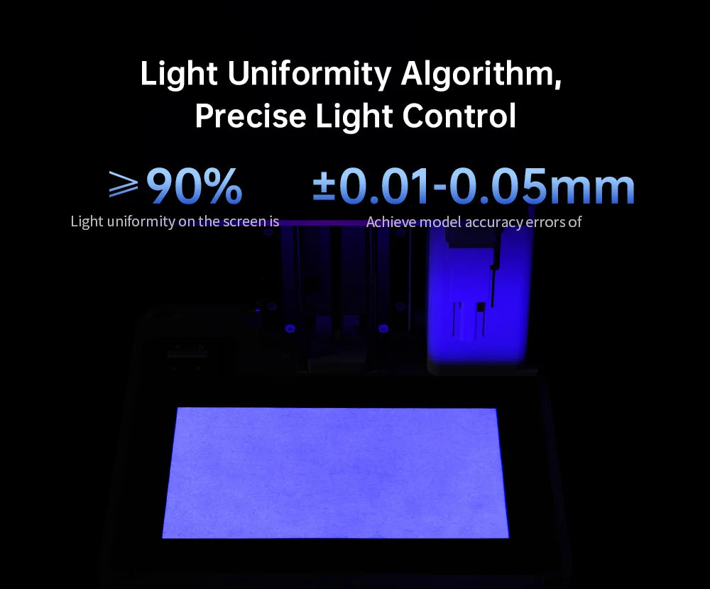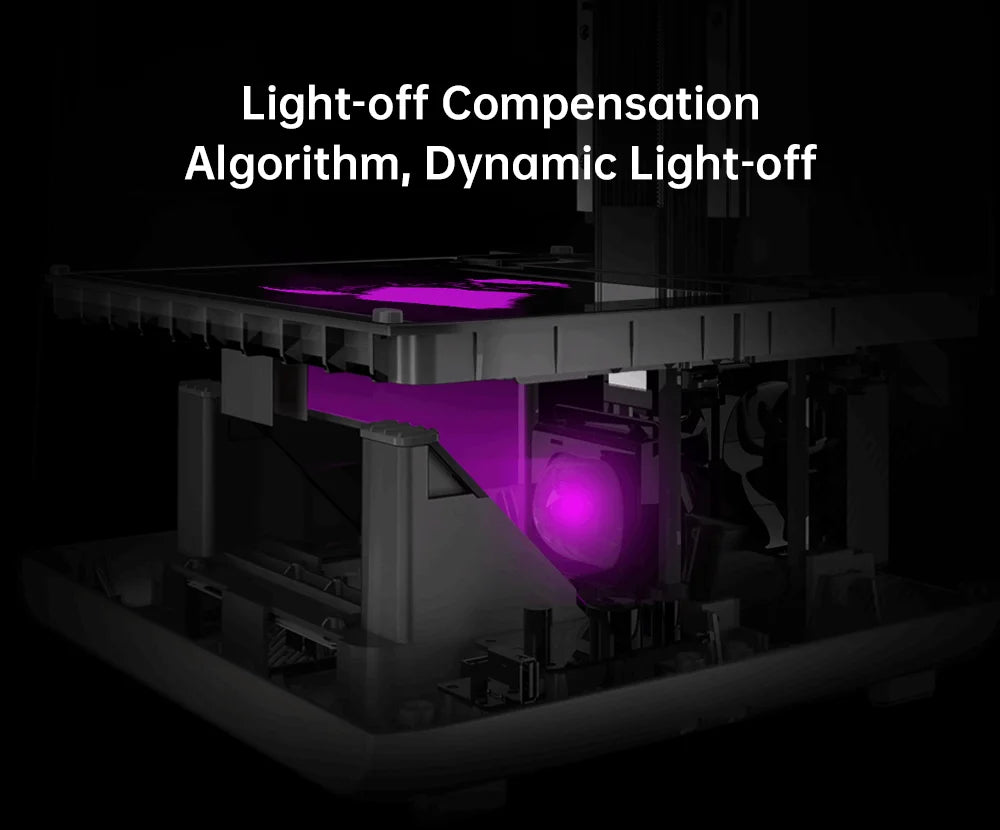 Equipped with a light-off compensation algorithm, it can dynamically adjust the light-off time of the under-screen light source according to the exposure area of the printing model and the resin flow rate, ensuring that each layer of the model is successfully exposed and detached, improving the printing success rate.