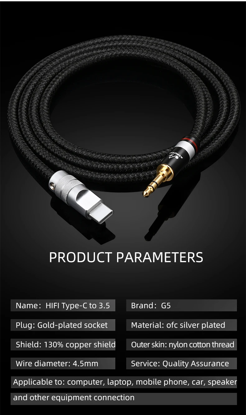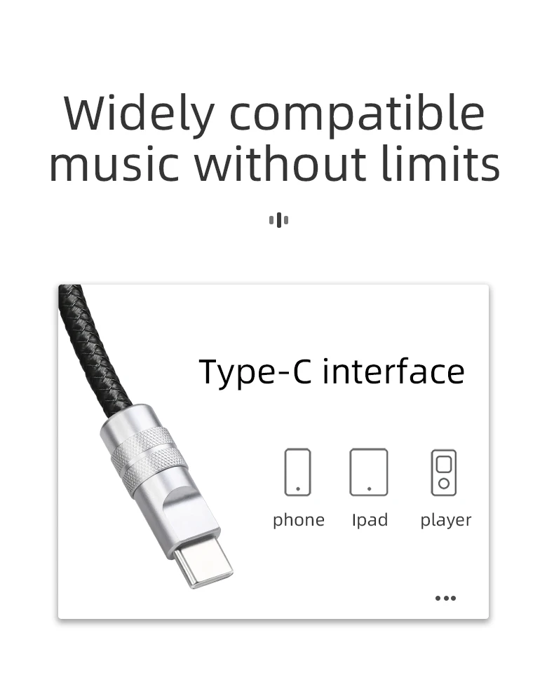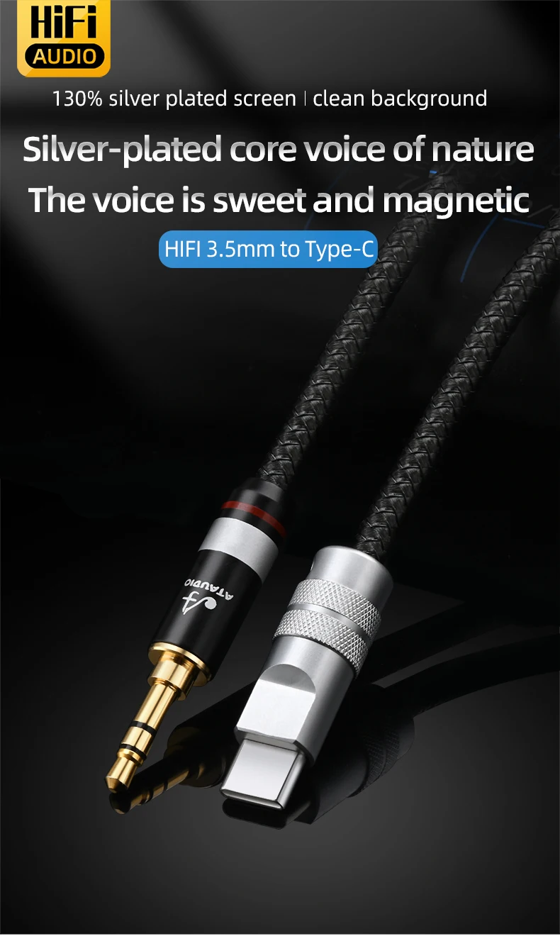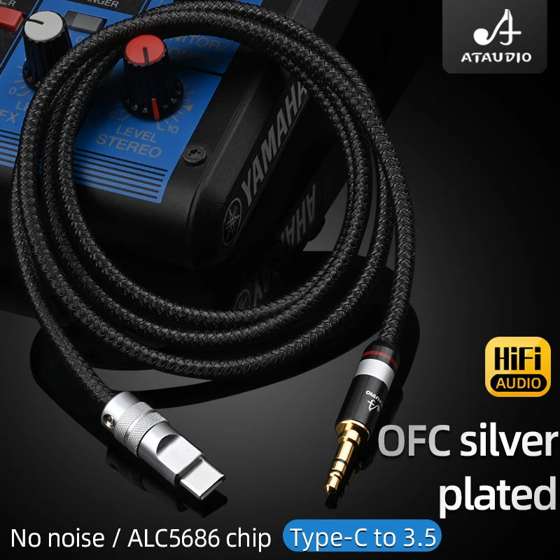 ATAUDIO HIFI Usb Type C To 3.5mm Aux Audio Cable Headset Speaker Headphone Jack Adapter Car Aux