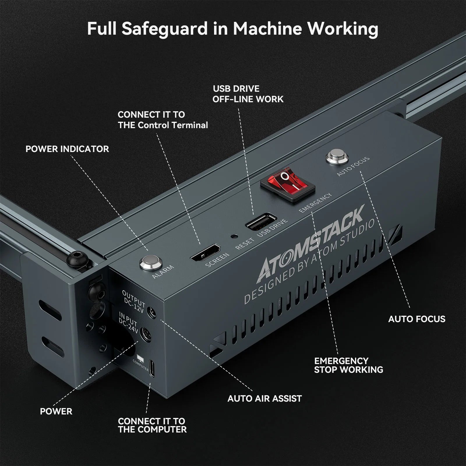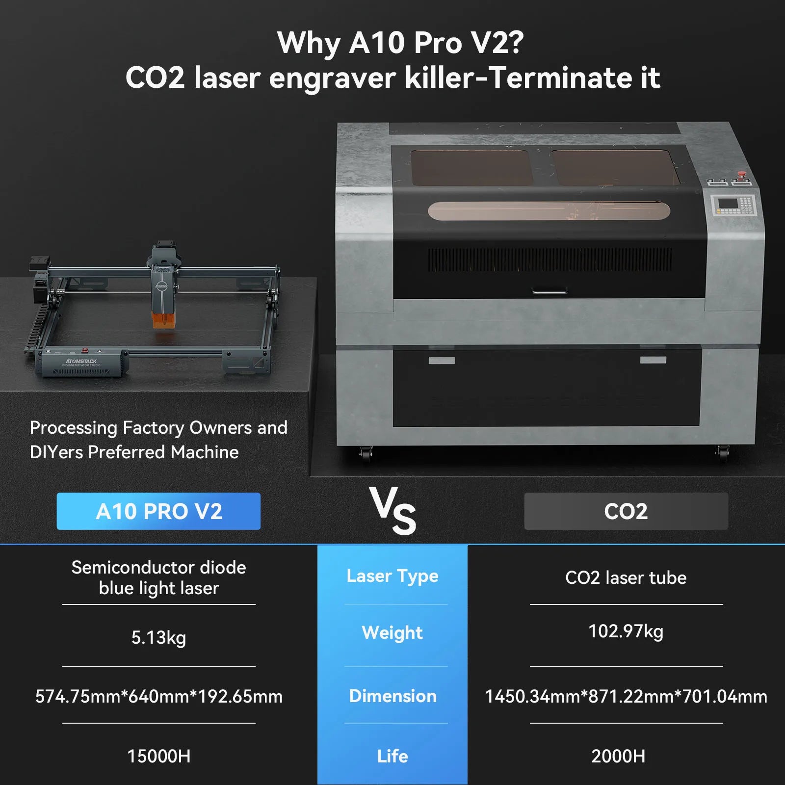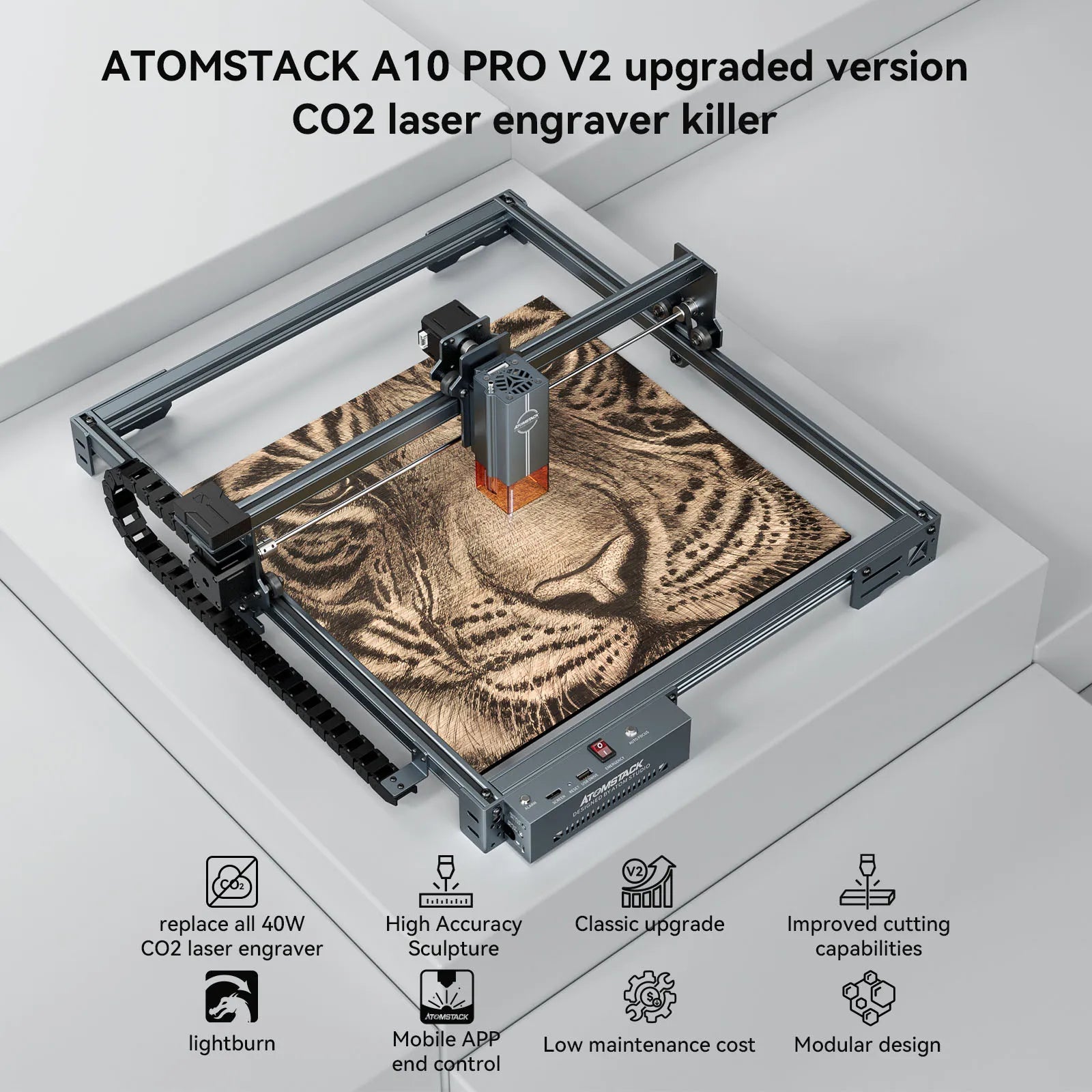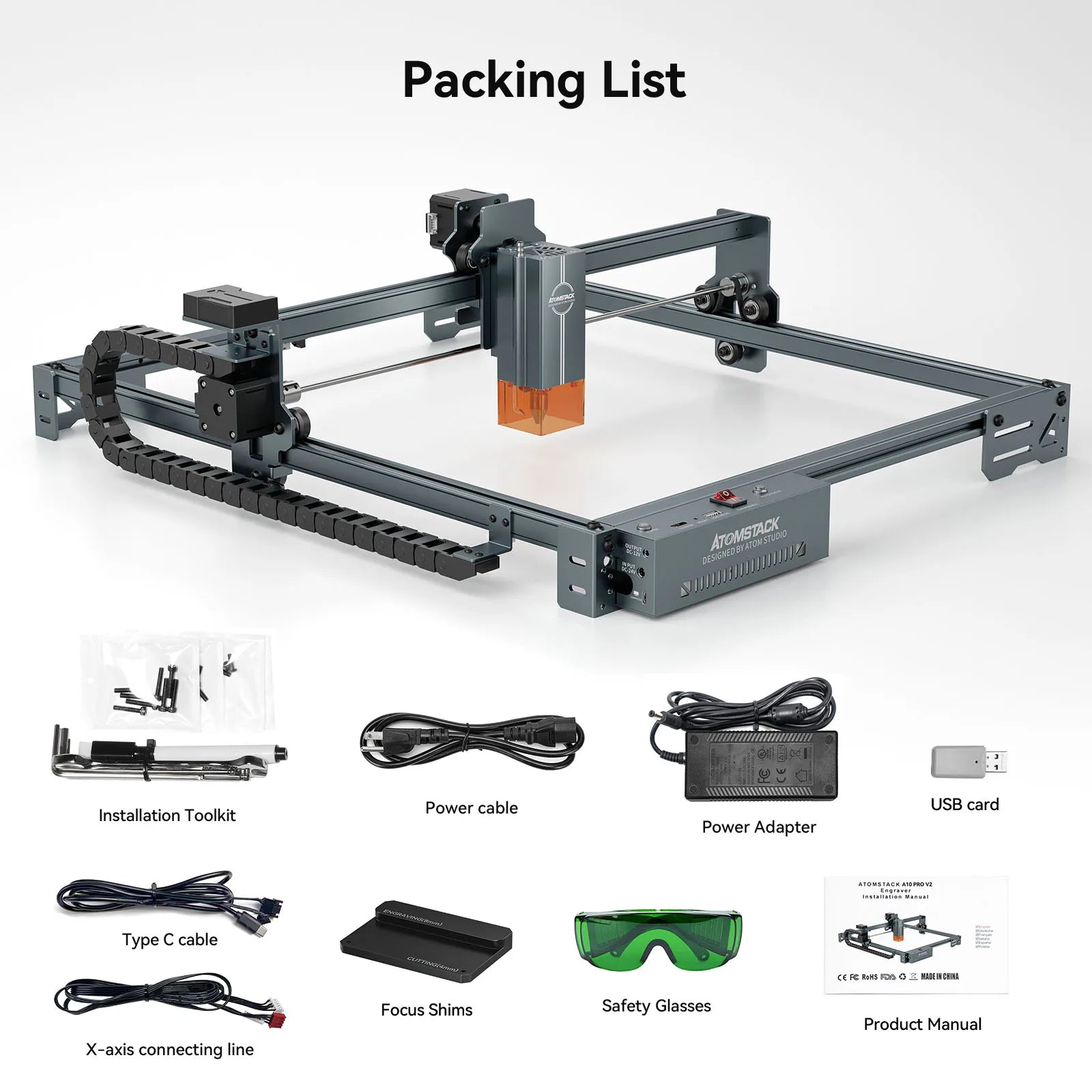 【Considerate Service, Durable Device】With up to 15000-hour lifespan and low maintenance costs, backed by 24/7 customer service, and technical support. Atomstack offers free replacement of faulty parts, ensuring worry-free usage. Discover limitless creativity with the Atomstack A10 Pro V2 laser