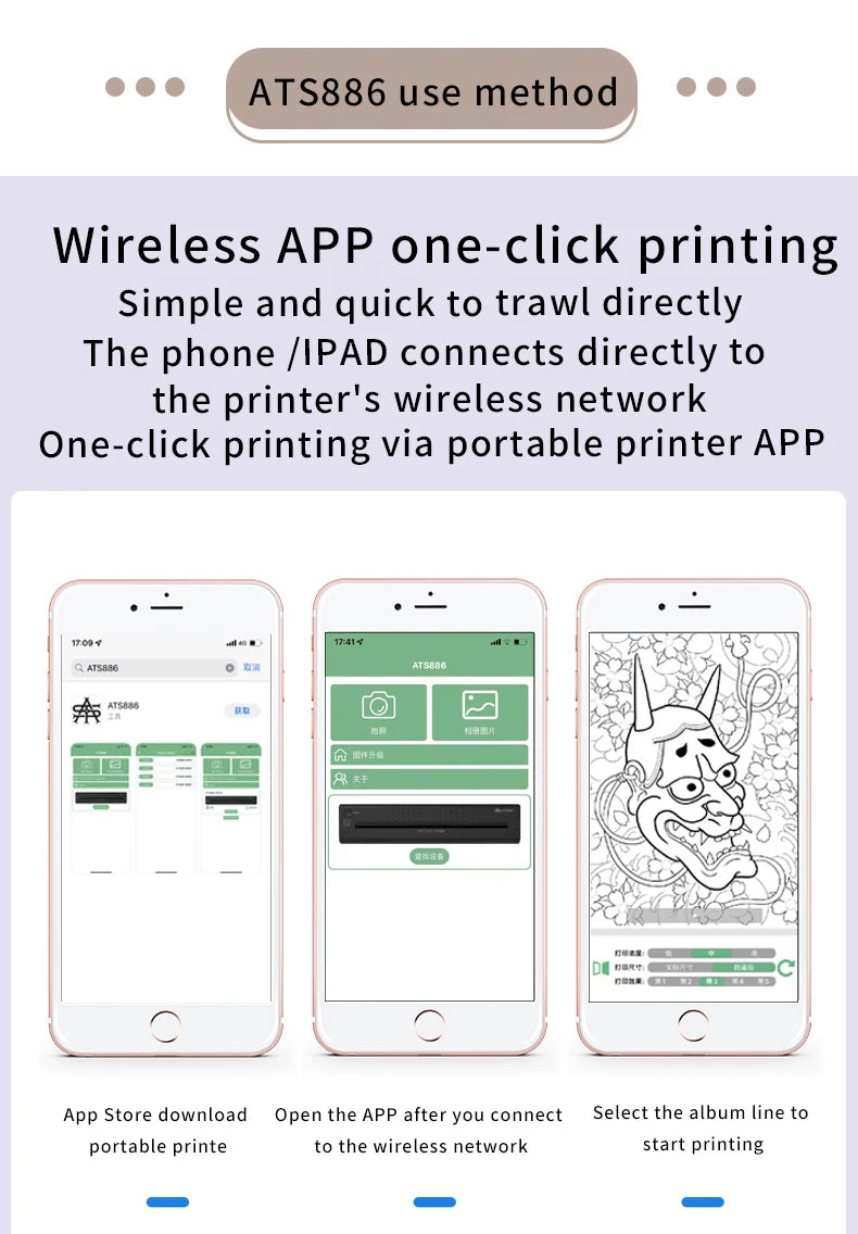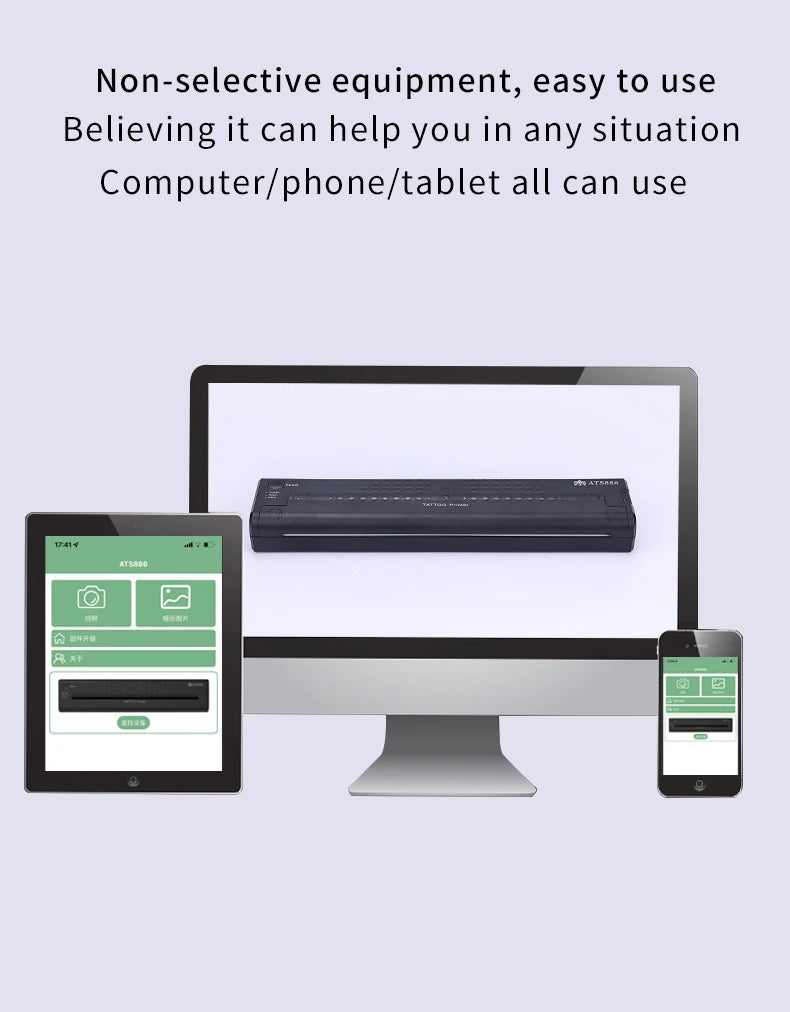 【All in One Printer】 PeriPage A40 mobile printer, ideal for printing PDF file, test paper, webpage, contract, photo, picture, etc. an excellent assistant for study and office work.