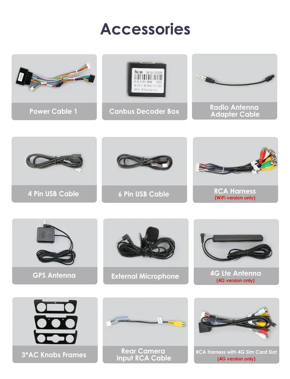 2) ADAS DVR Camera, Tire Pressure Monitoring, OBD2, External Microphone, RCA cable;