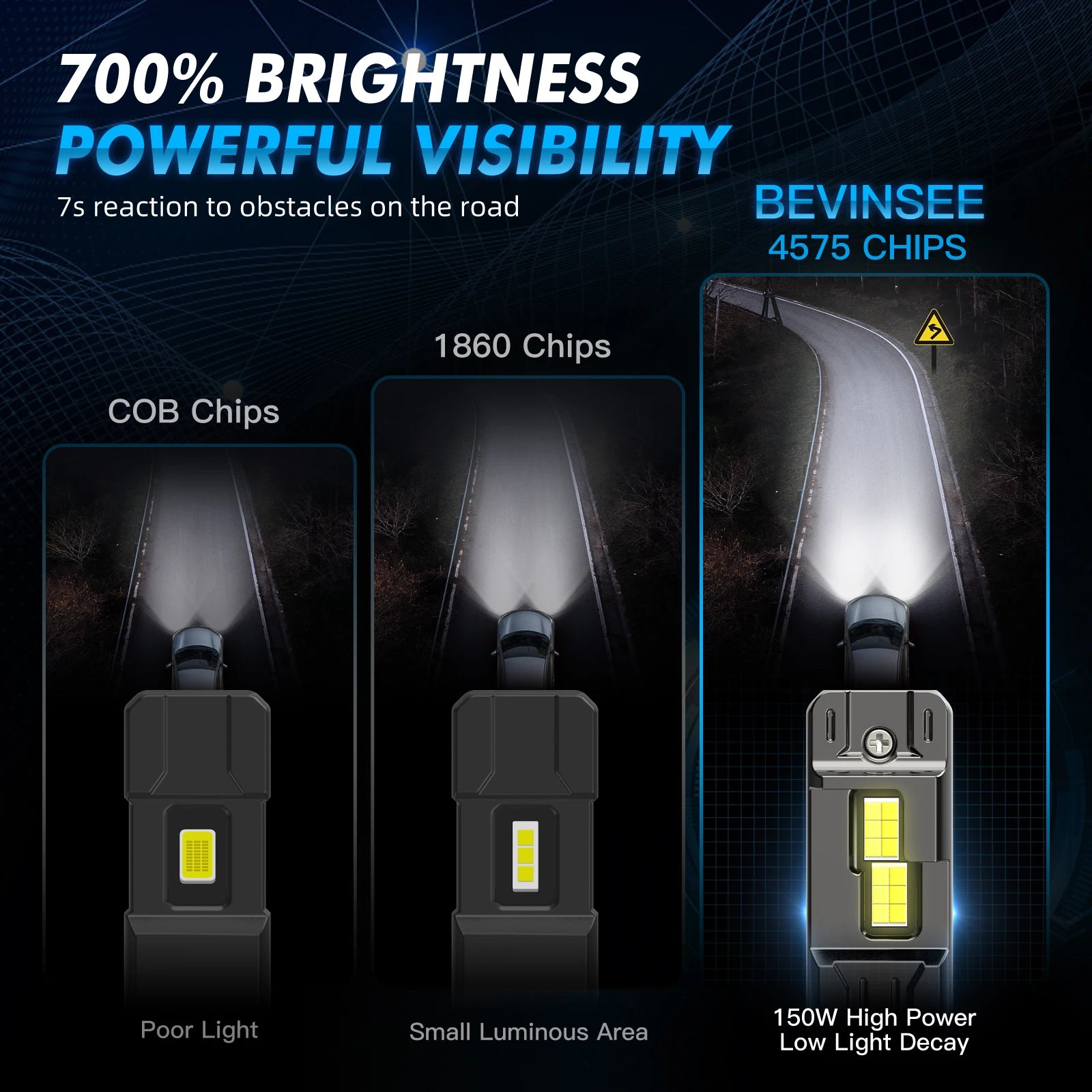 Bevinsee H4 LED Headlight Canbus Error Free H8 H9 H11 H7 LED Bulb High Power 9005 HB3 9006 HB4 9012 Lights For Car 150W 28000LM