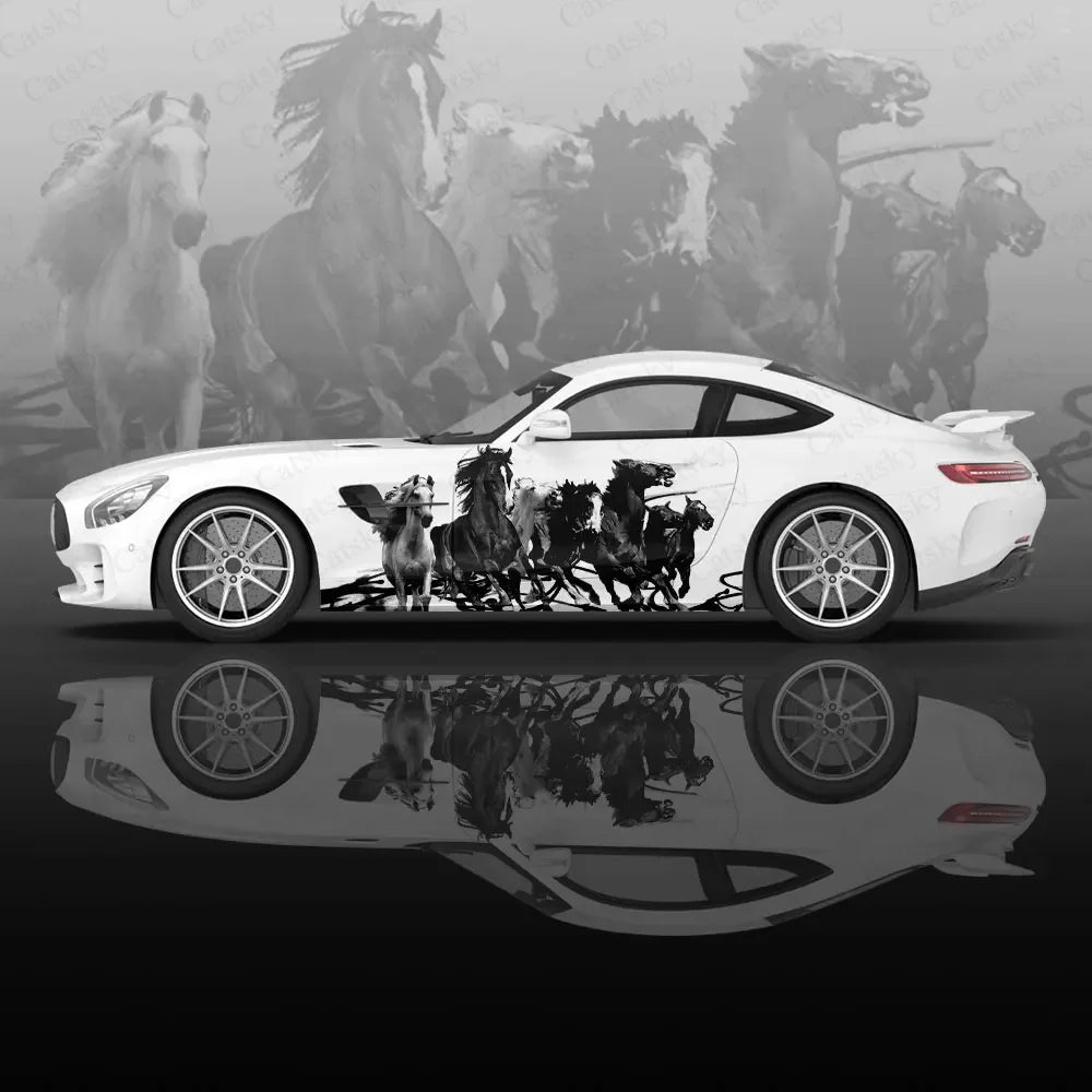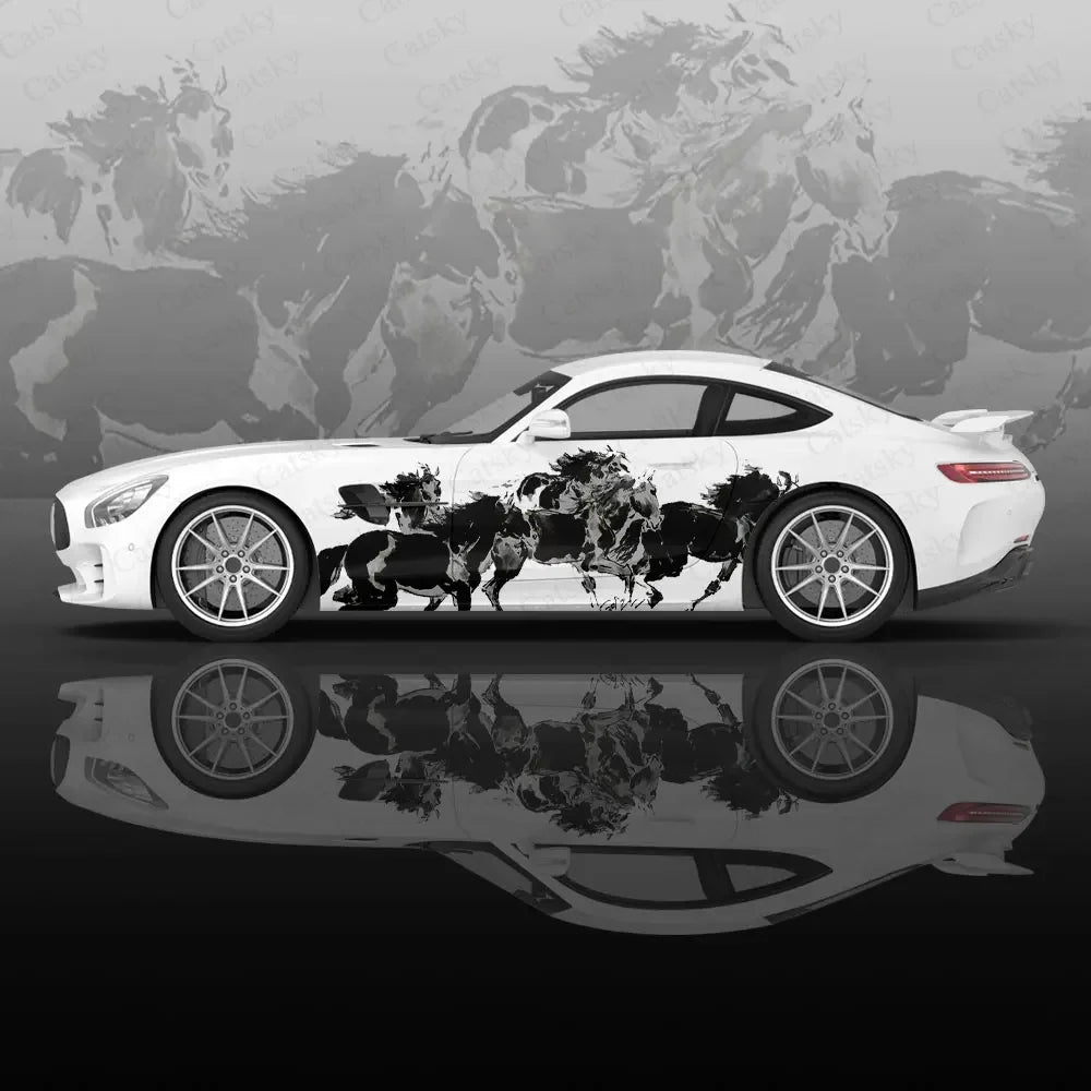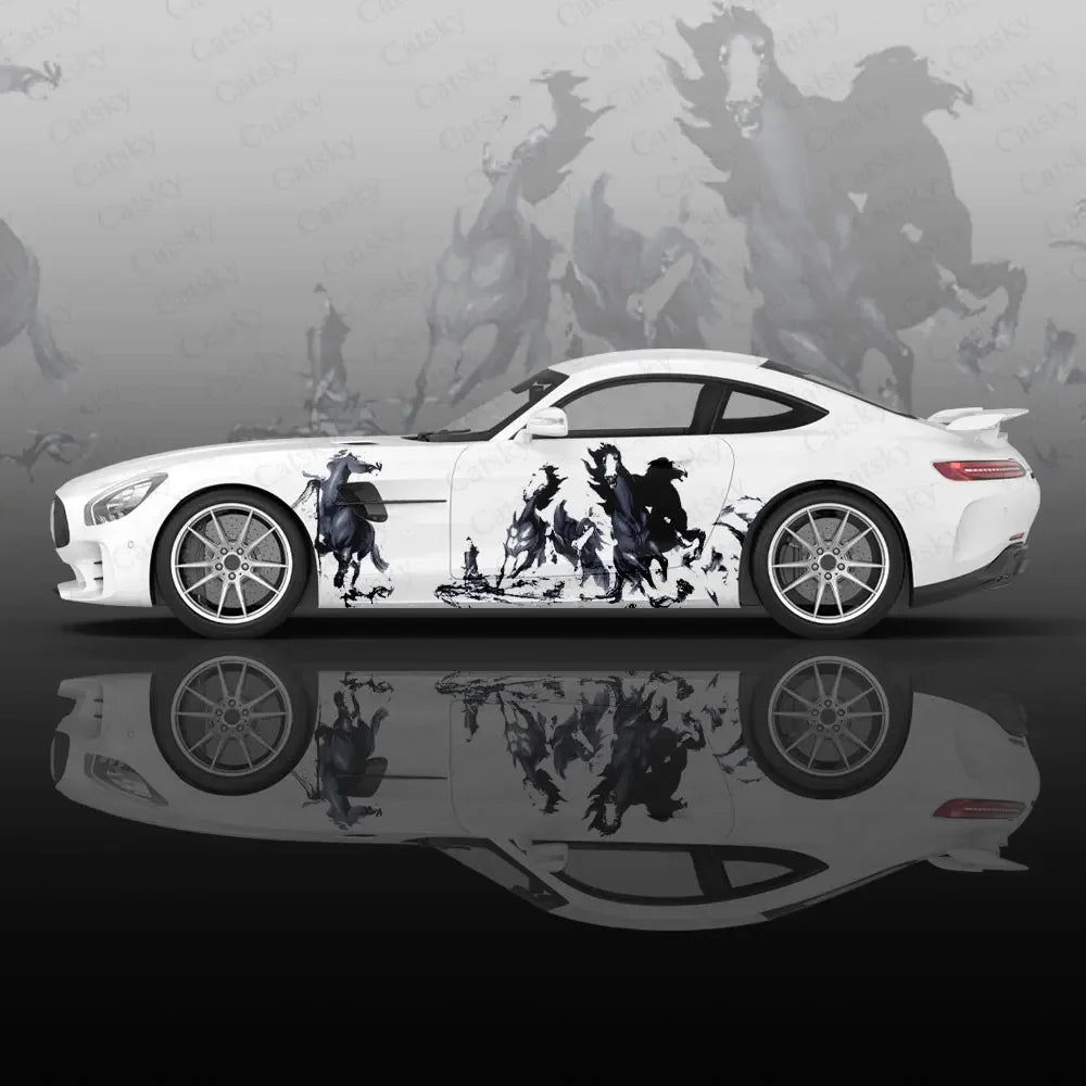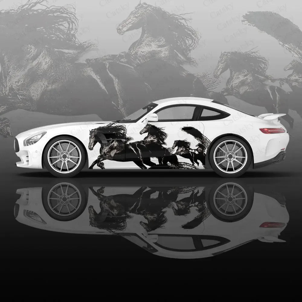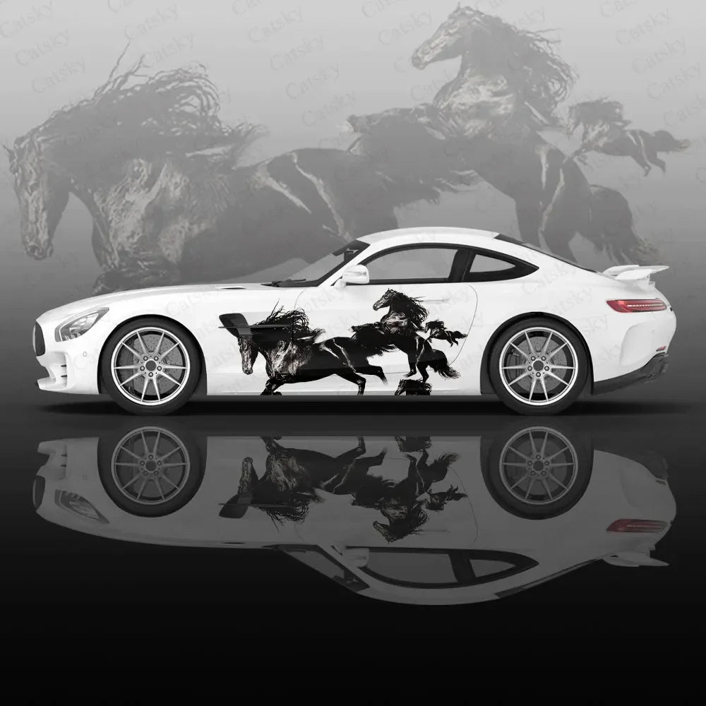 Black Art Horse Car Hood Bonnet Vinyl Decals Protect Door Side Skirt Sticker Vinyl Wrap Body Decoration Stripes Racing Sticker