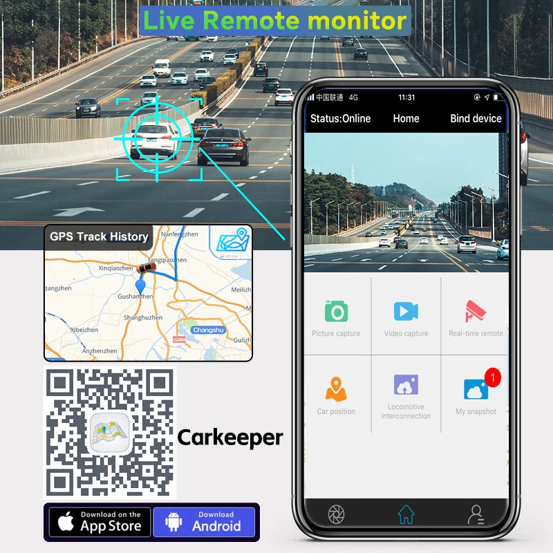 Track the location of your car, remotely capture what happen to your car from anywhere in the world. View images and watch video clips of your car with App on your smart phone once you are connected to the internet.