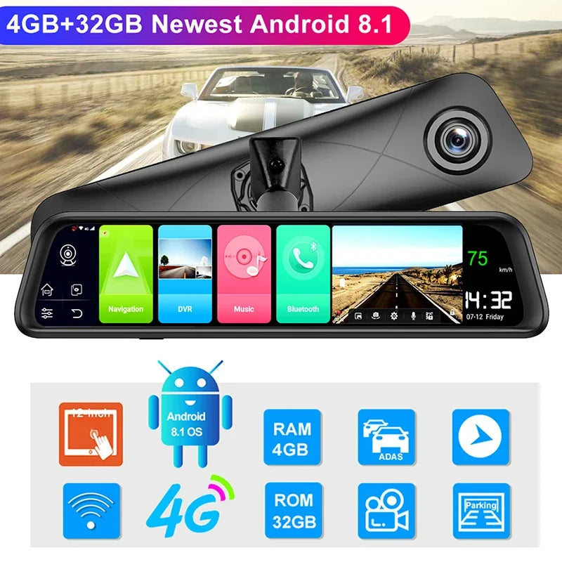 The Quad core 1.4GHZ High performance processor incorporates Android 8.1 smart systems. it makes the car dvr runs more quickly. You can download any APP from google play store.