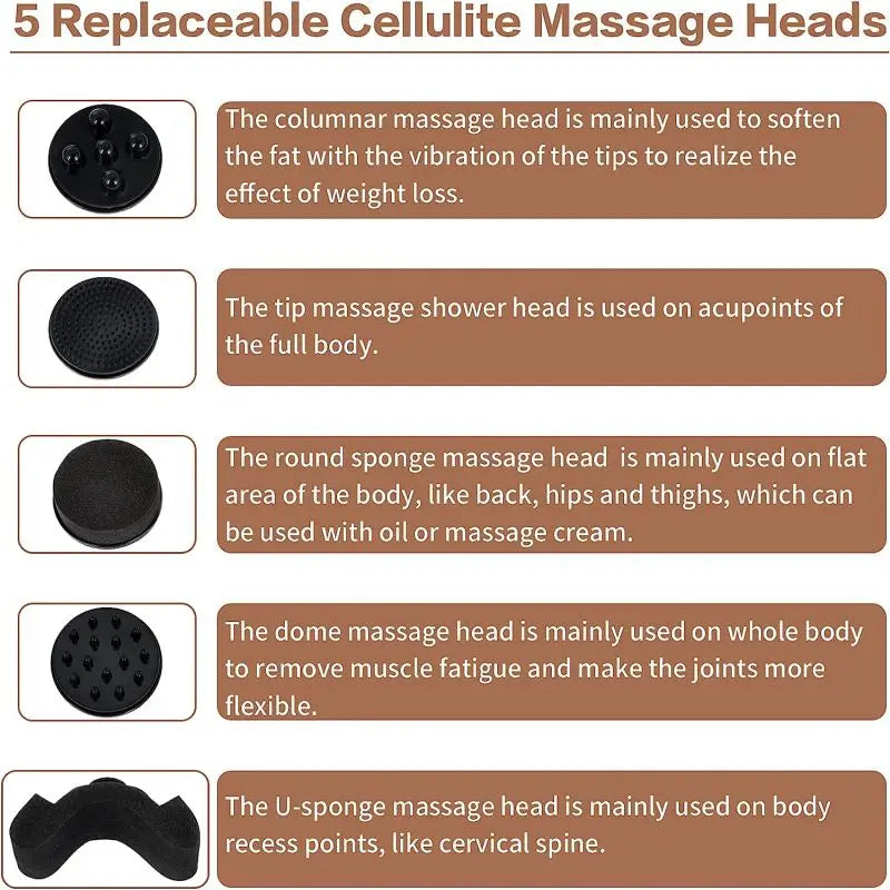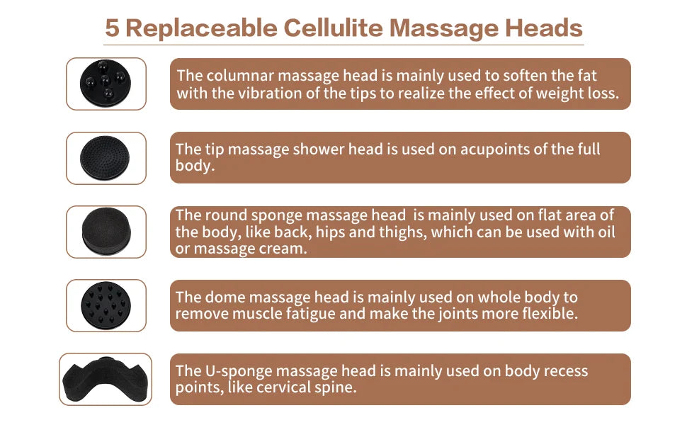 3. 5 different massage heads—— used for different areas and different treatment results.