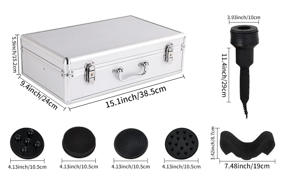 This equipment is based on the principle of physical therapy vibration. The vibration energy emitted by various shaped probes can dissolve fat layers and accelerate blood circulation to achieve body slimming effect. At the same time, it can effectively relieve muscles tension and fatigue, and remove puffiness.