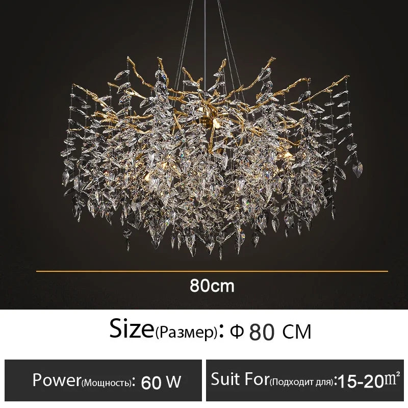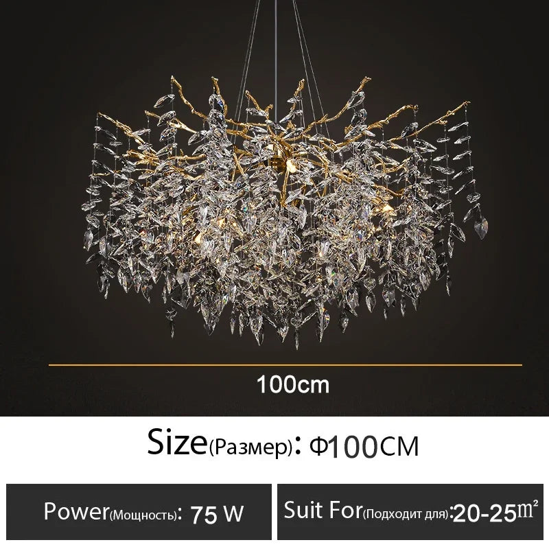 Branch-shaped luxury crystal ceiling chandelier home decoration golden gloss LED modern villa dining room living room chandelier