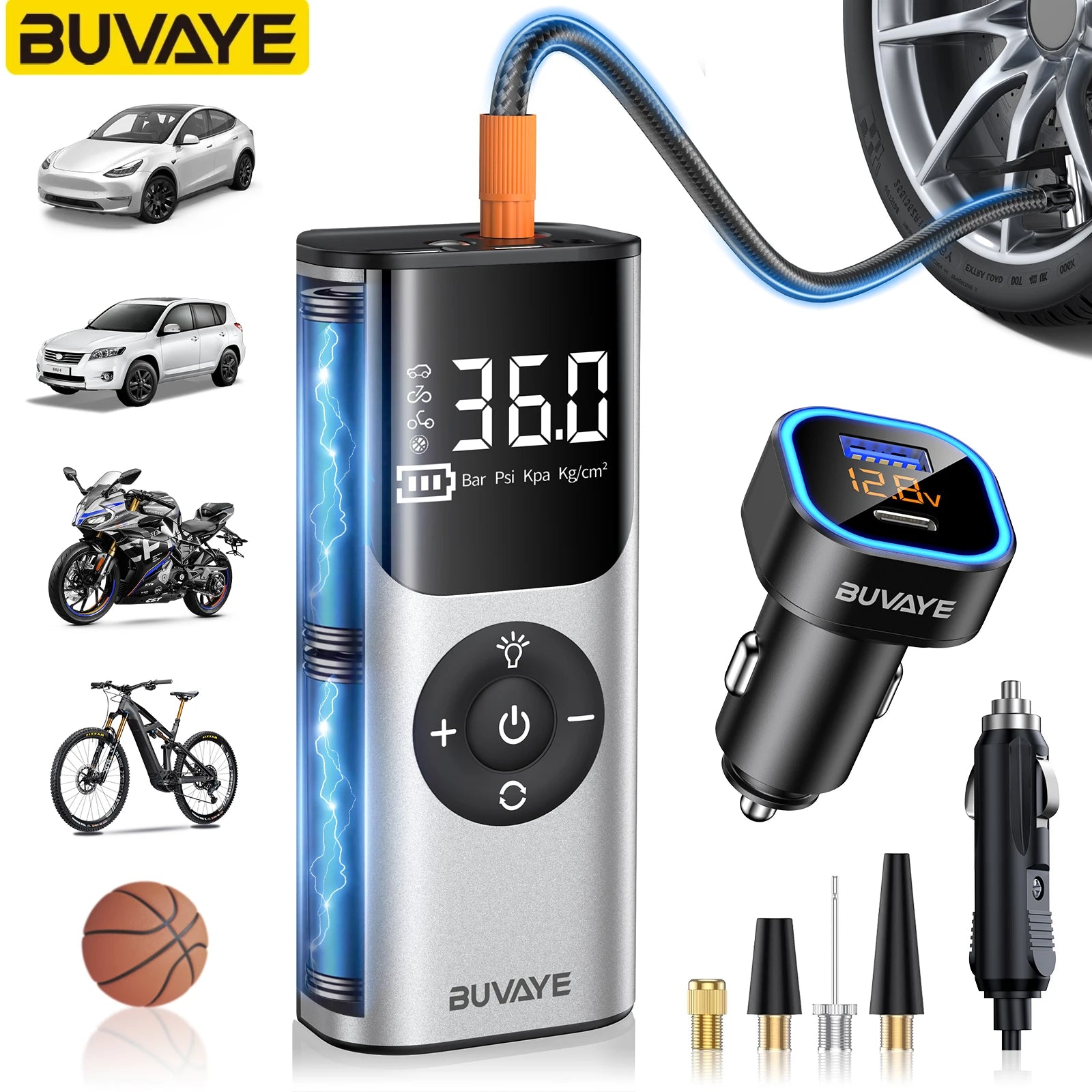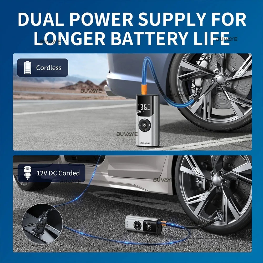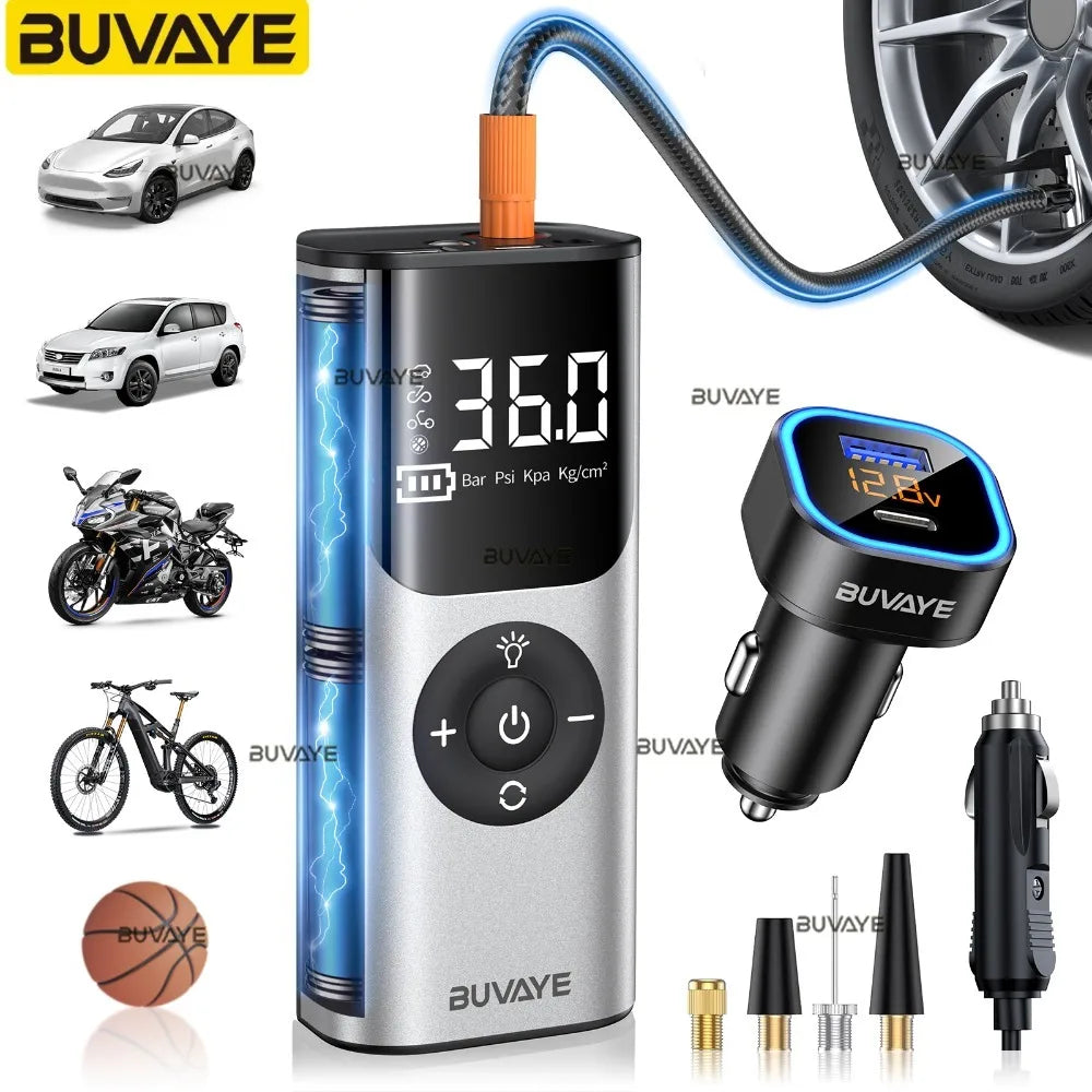 BUVAYE Car Inflator Tire Pump Portable Car Air Compressor for Motorcycles Bicycle Boat Tyre Inflator Digital Auto Inflatable