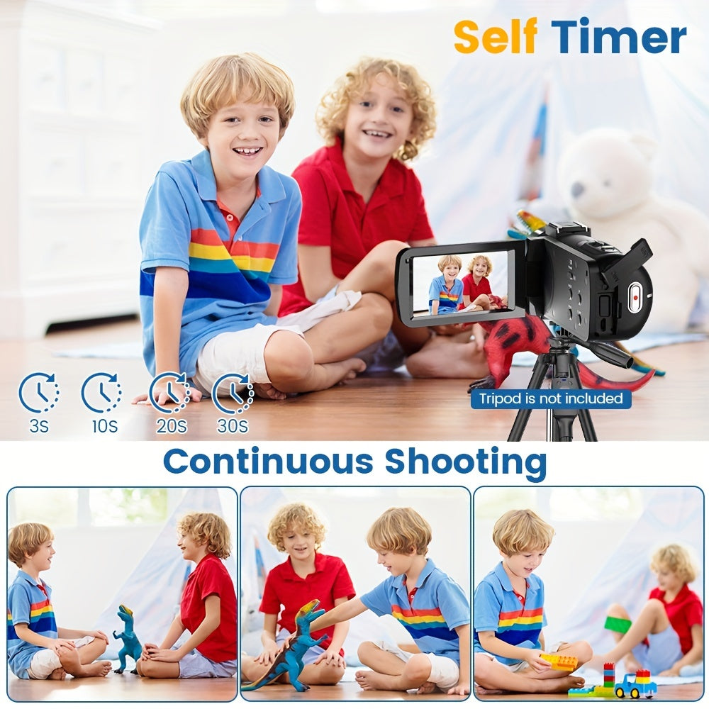 【Multifunctional Vlogging Camera】: Our camera is packed with a range of practical features, including video pause (continue recording in the same file without restarting a new one), time-lapse, slow motion, continuous shooting, and self-timer. Additionally, it comes with a 3.0-inch 270° rotatable screen for easy maneuvering.