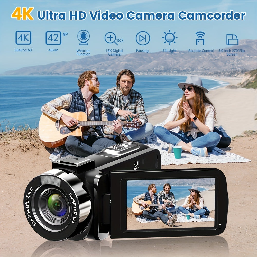 【Stunning 4K & 42MP】: Capture every detail in vivid 4K/30FPS video and stunning 42MP photos with our ultra HD camcorder. With 18X digital zoom, you can get up close and personal with distant objects.