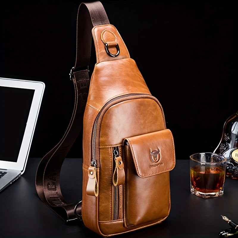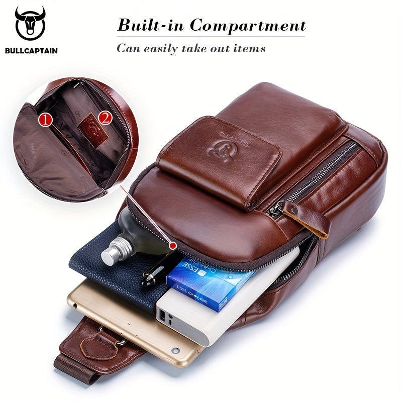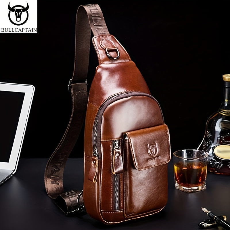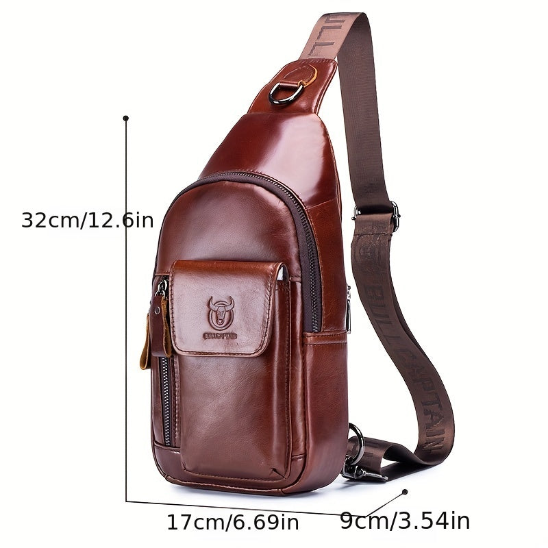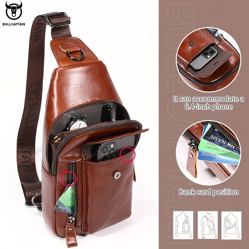 Captain Men's True Leather Retro Breast Bag Large-capacity Fashion Men's Bag Multi-functional Fashion Shoulder Messenger Bag