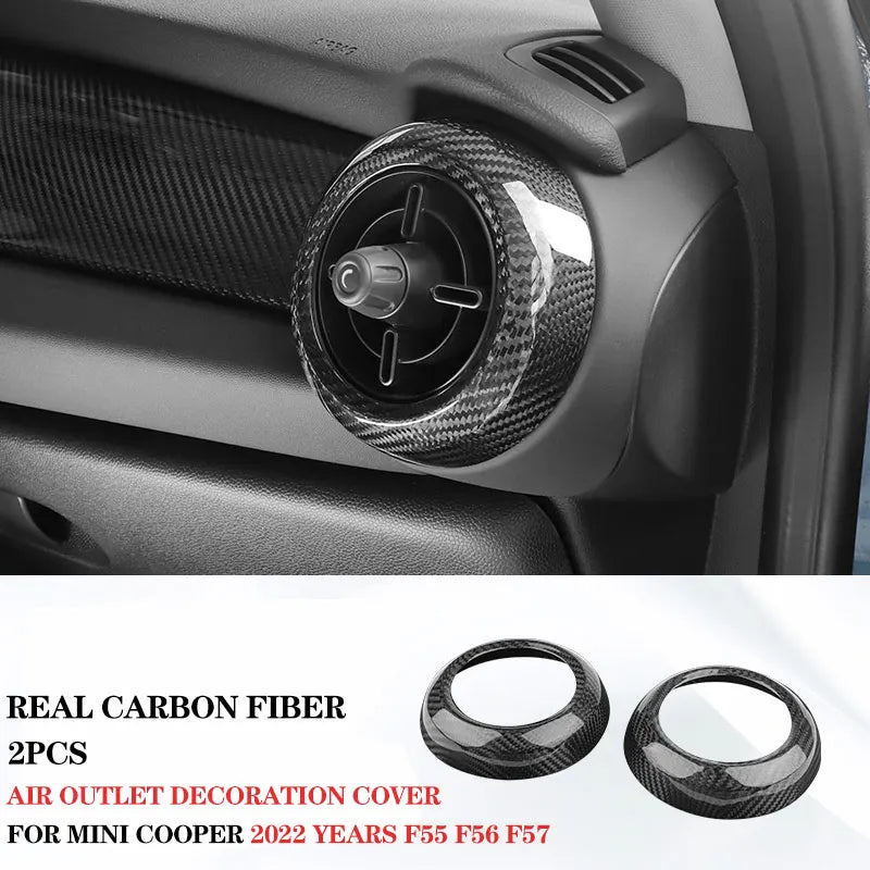 Car Air Outlet Cover Real Carbon Fiber For Mini Cooper F55 F56 F57 Accessories Ring Car Dashboard Side Vent Sticker Decorate