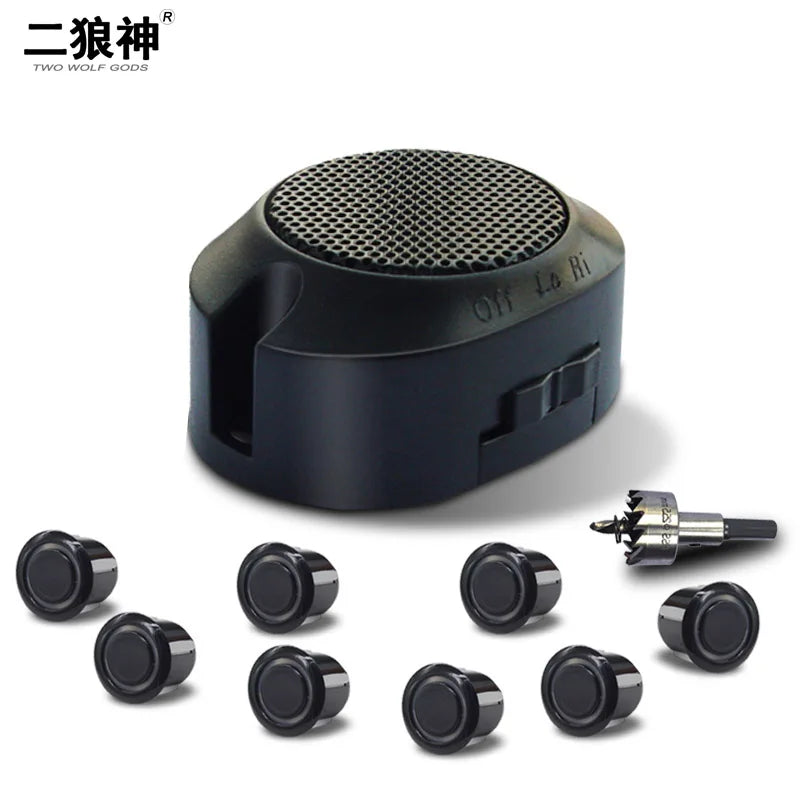 The QXNY car reversing radar system is composed of 4 or 6 ultrasonic sensors, a digital control host and an alarm buzzer. It automatically detects the distance of obstacles behind the car through a sensor installed on the rear bumper of the car, and is reminded by an alarm sound Drivers, help drivers stop safely