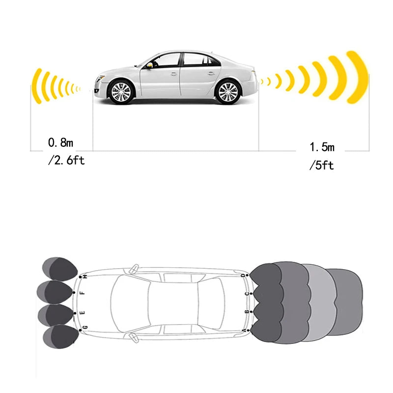 4: Detection distance: Rear:0.3m-1.5m fron:0.3m~0.8m