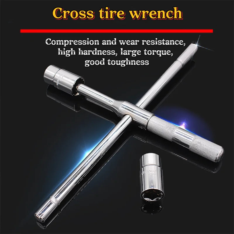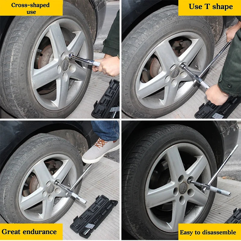 1. Four-way cross-wheel wrench, labor-saving and extended disassembly, very suitable for storage in tool boxes, garages and even cars.