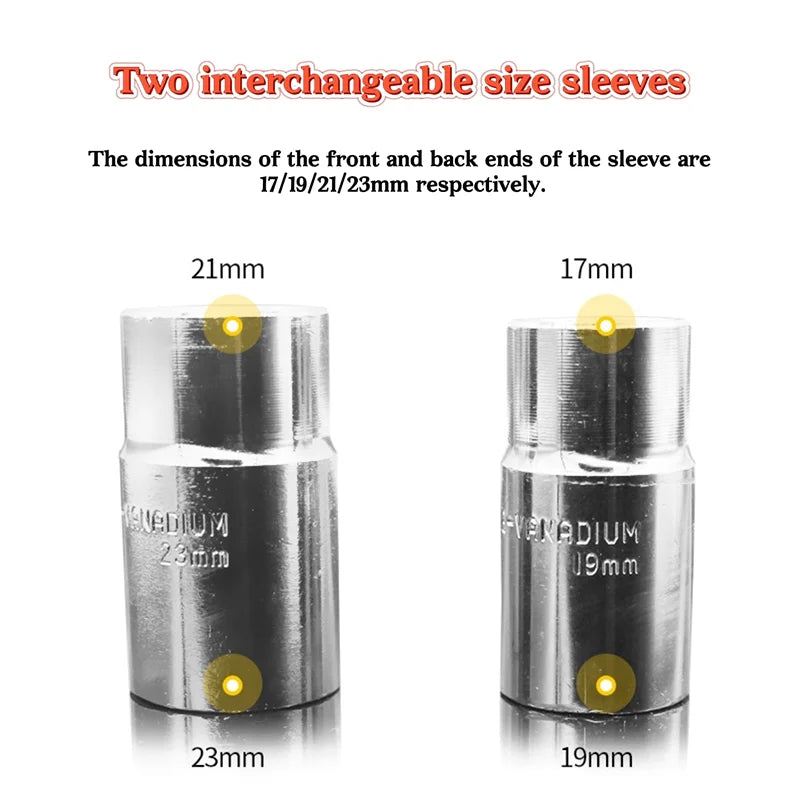 2. Equipped with 4 sizes of sockets (17mm, 19mm, 21mm, 23mm/).