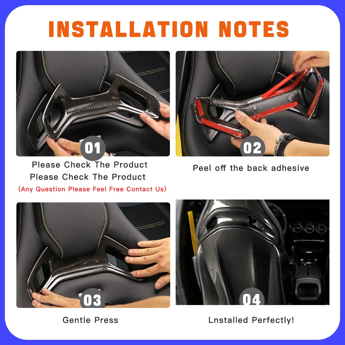 ●There is adhesive on the back of the product for easy installation. No drilling and tools required, no damage to your car, and a secure fit. Make sure the surface is dry and dust-free before installation.