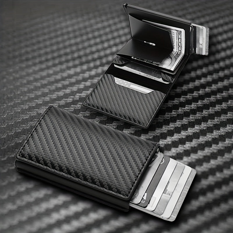 Carbon Fiber Credit Card Holder Wallet Men Rfid Smart Metal Thin Slim Pop Up Minimalist Wallet Small Black Purse Metal Wallet