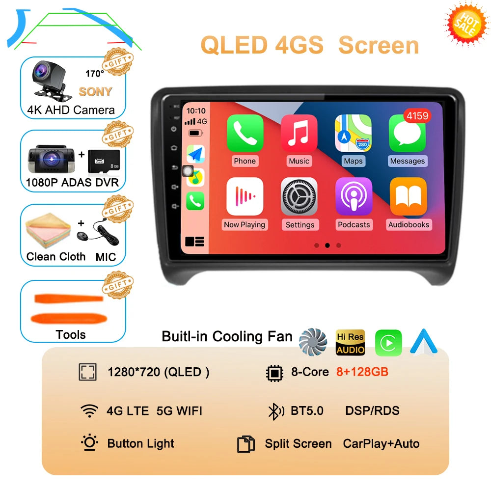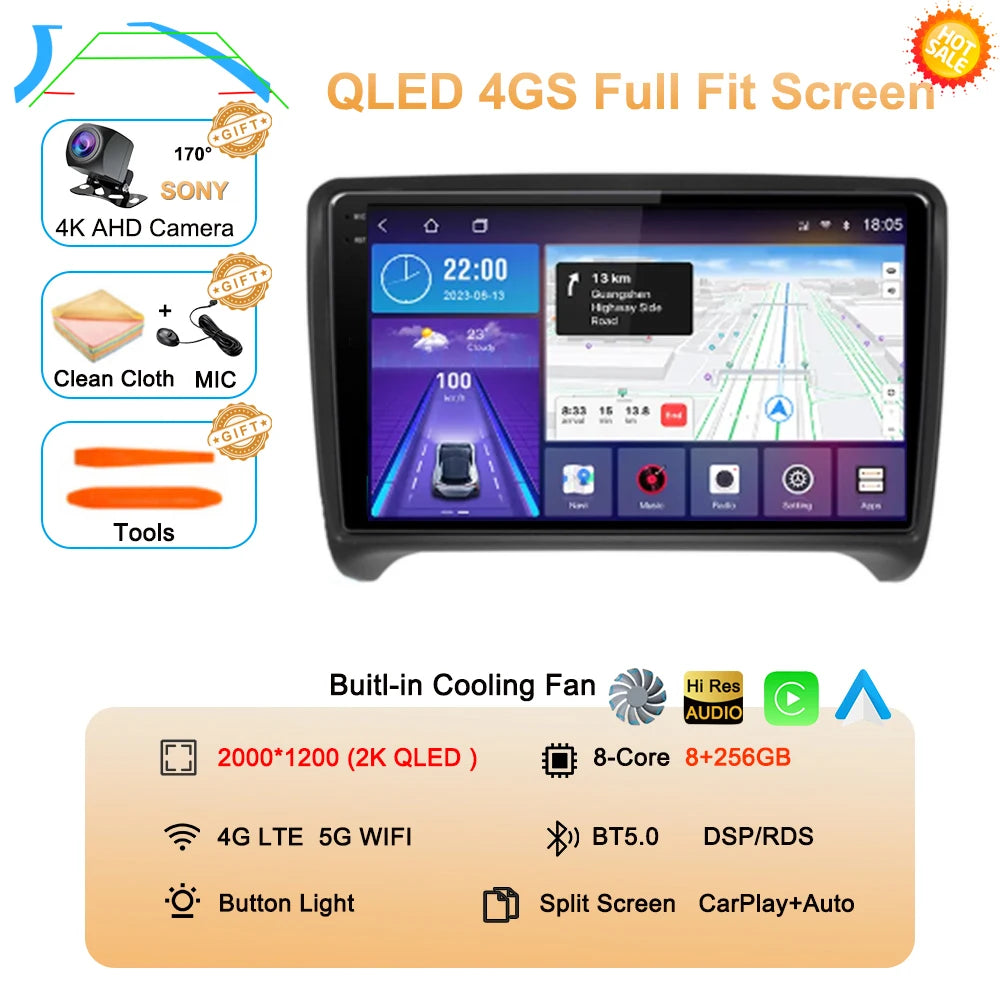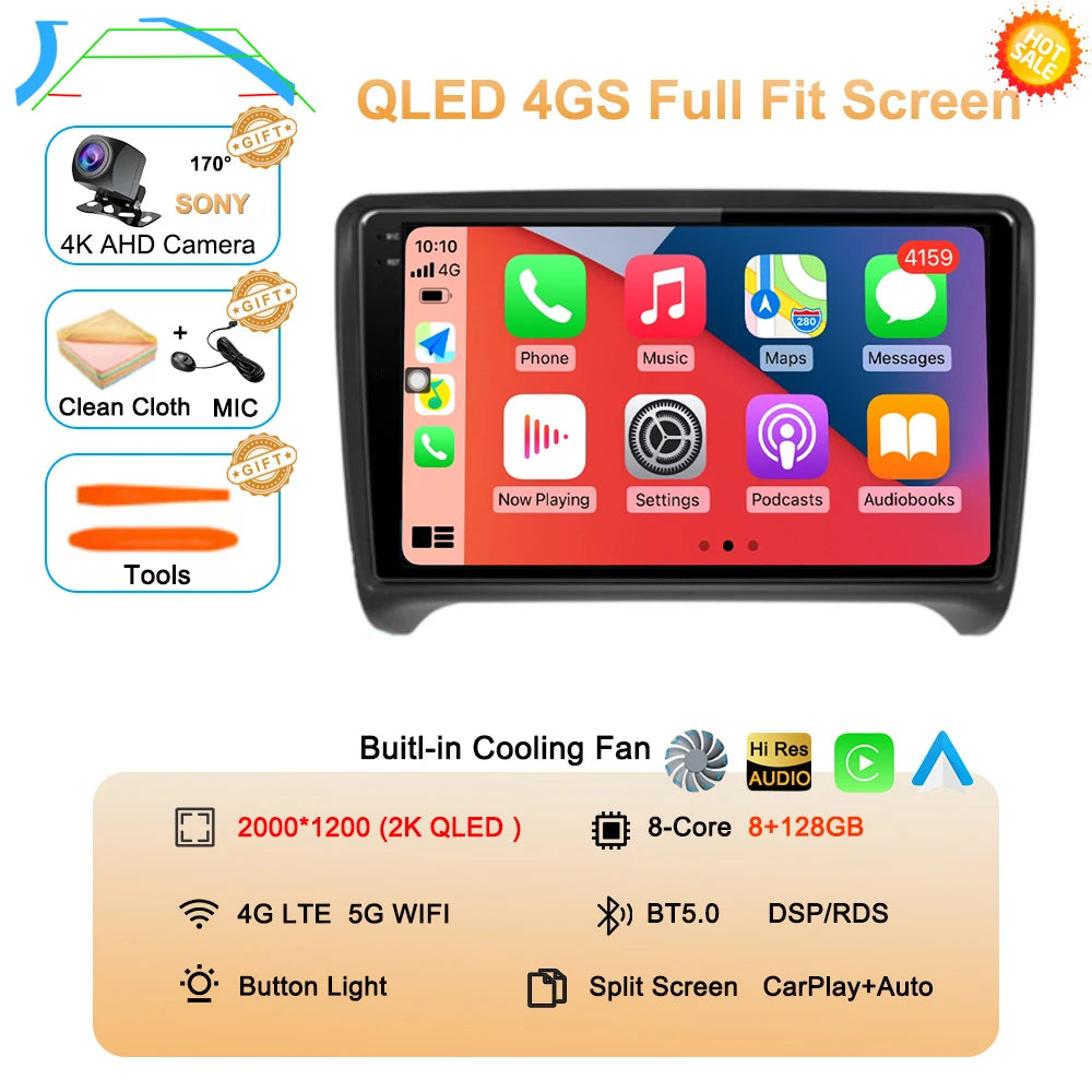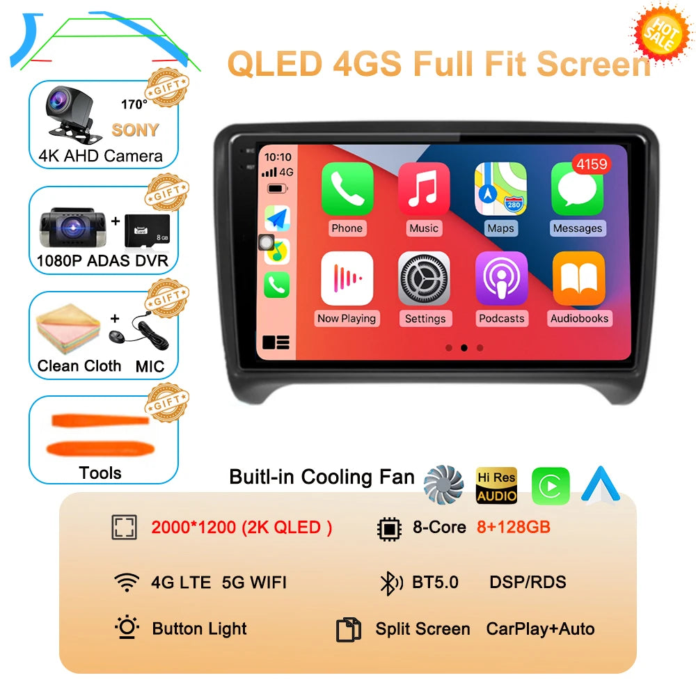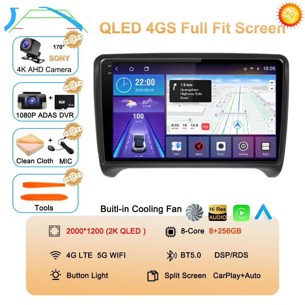 Carplay Auto Android 13 2 DIN Intelligent System For Audi TT MK2 8J 2006 - 2014 Car Radio Multimedia Player WIFI Stereo GPS QLED