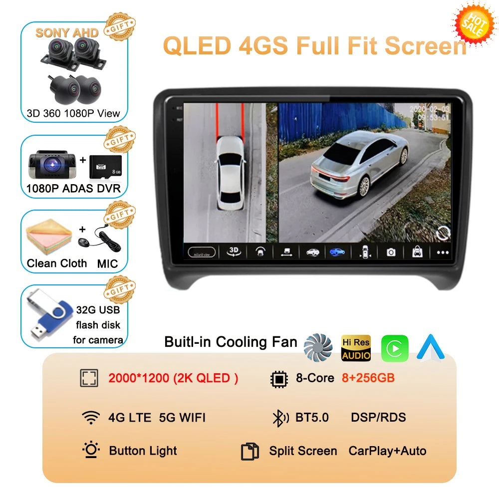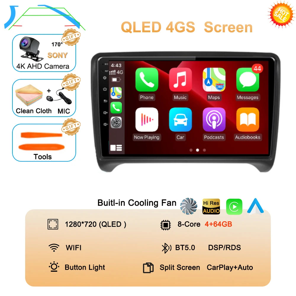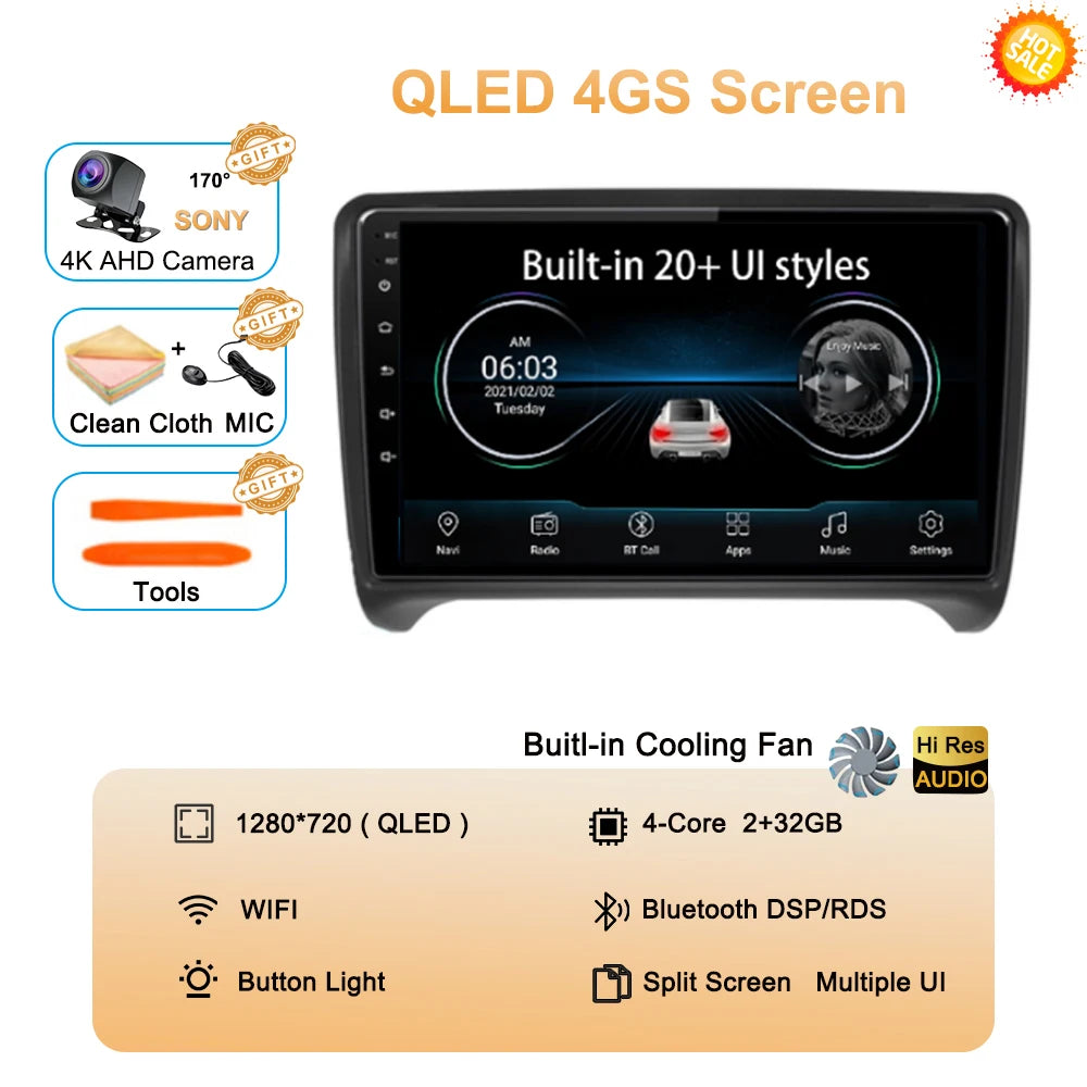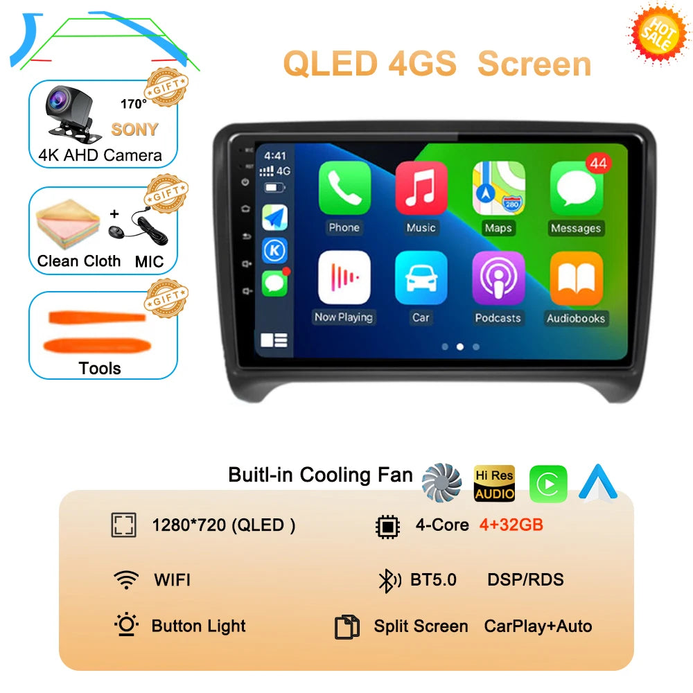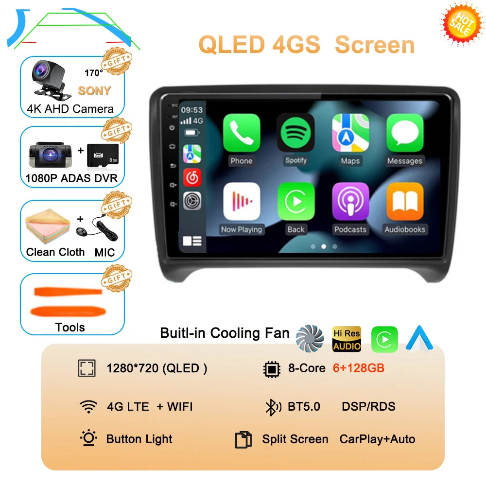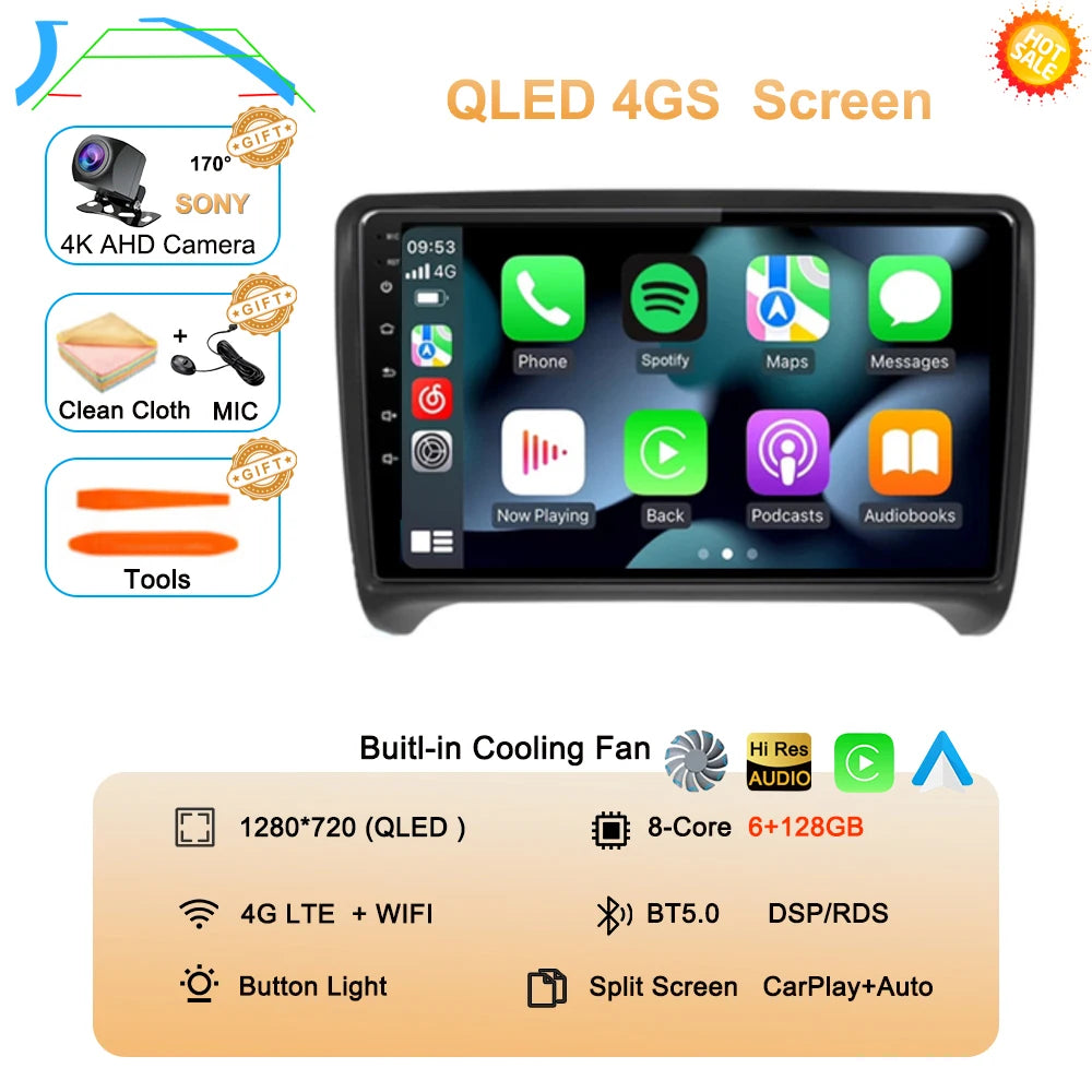 Carplay Auto Android 13 2 DIN Intelligent System For Audi TT MK2 8J 2006 - 2014 Car Radio Multimedia Player WIFI Stereo GPS QLED