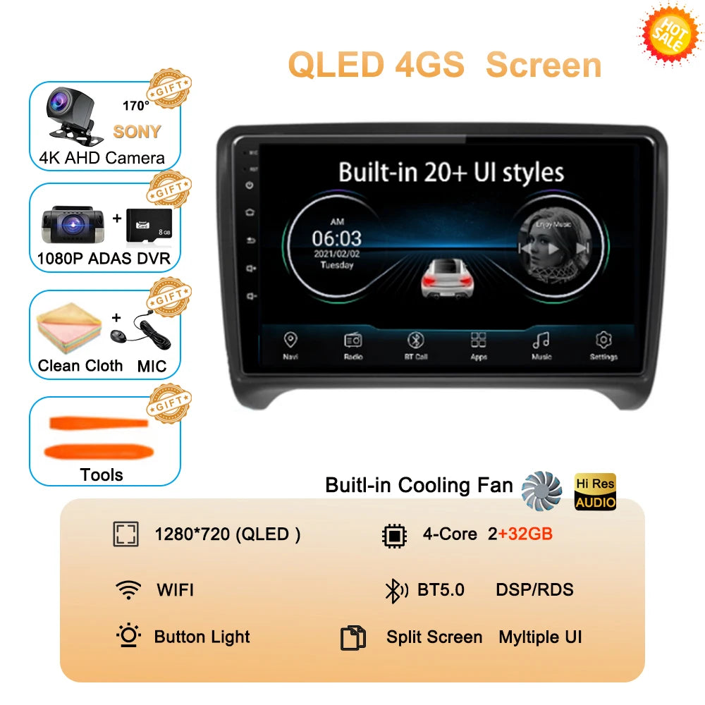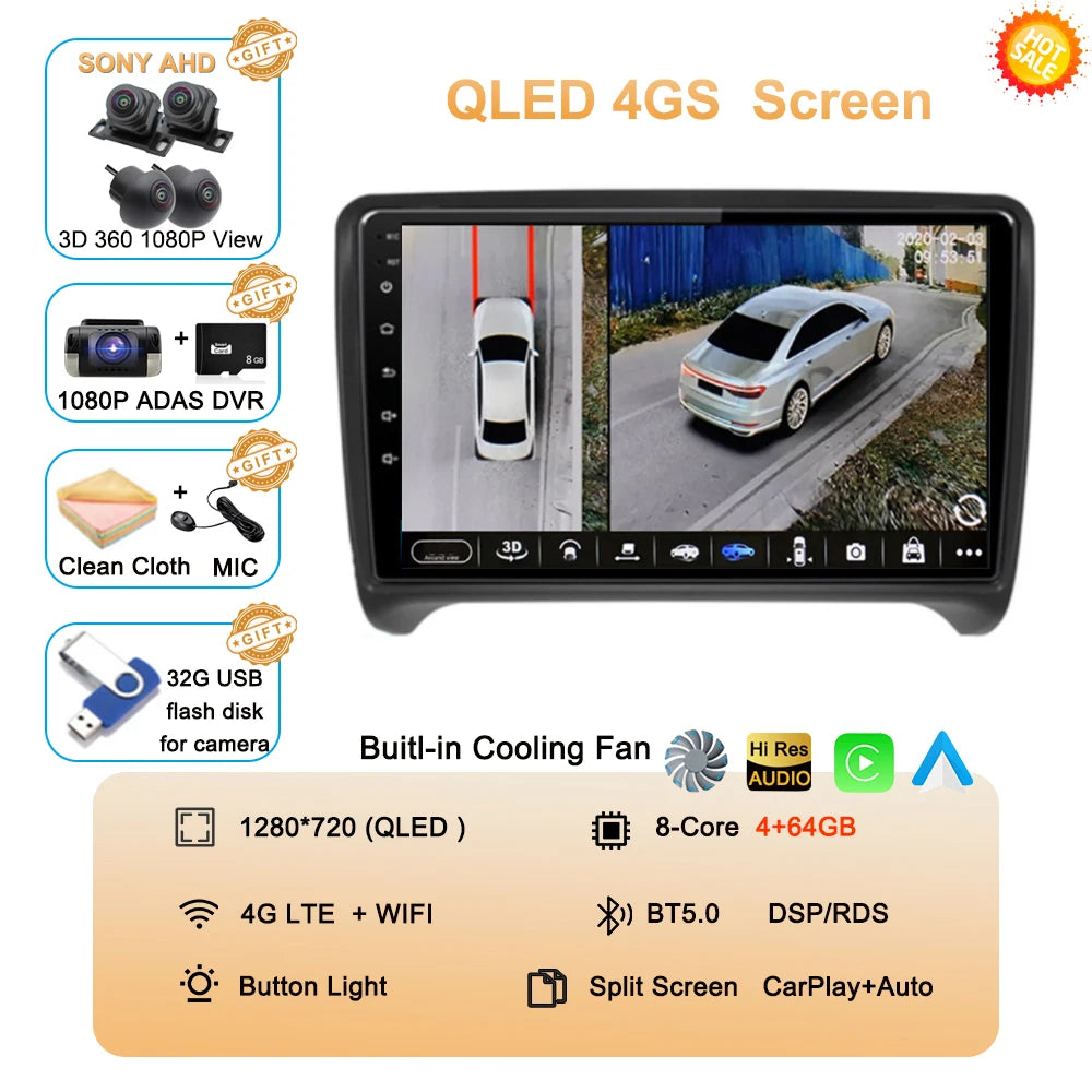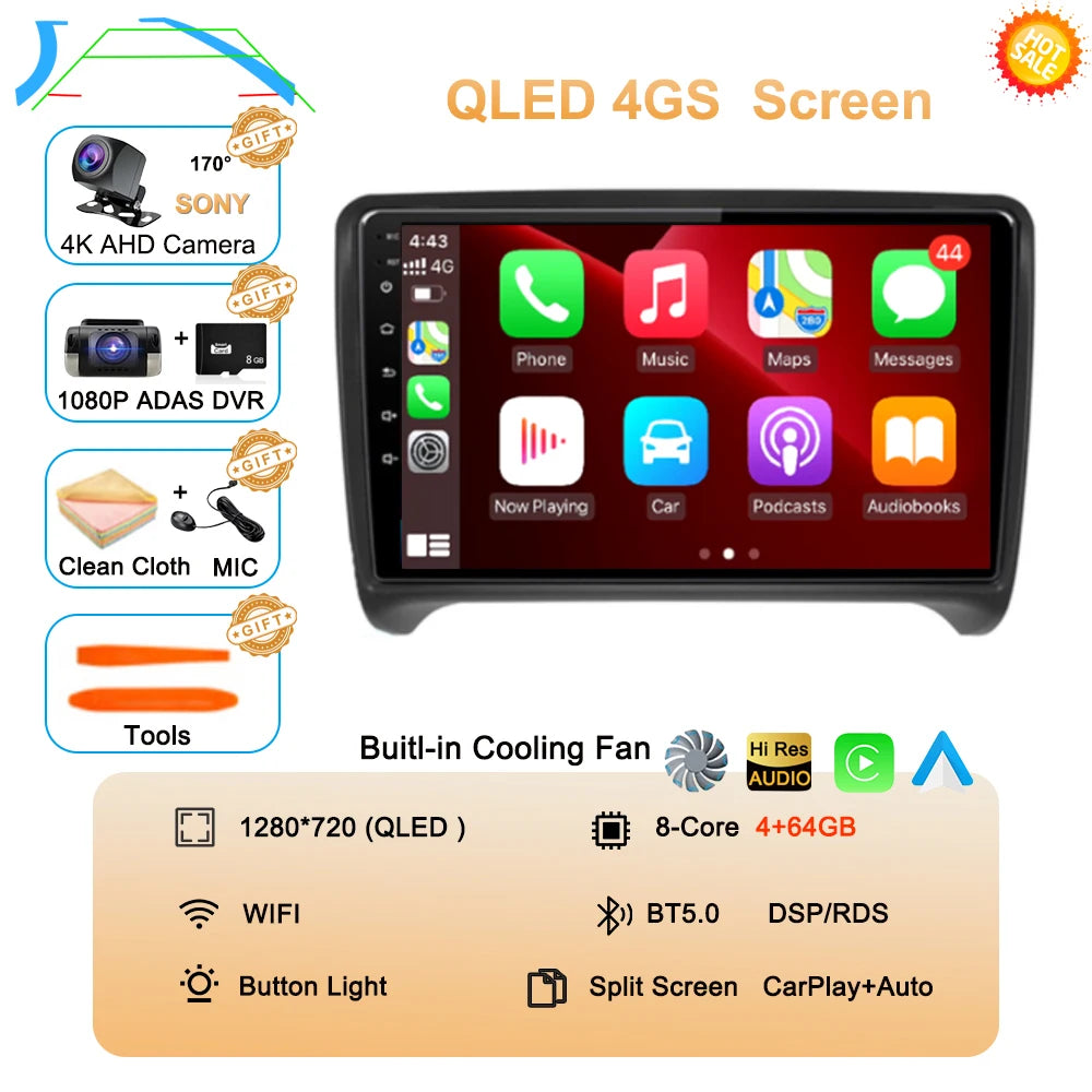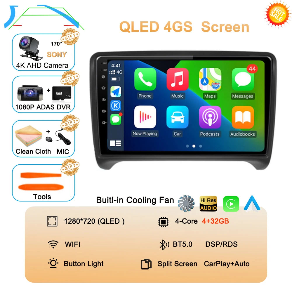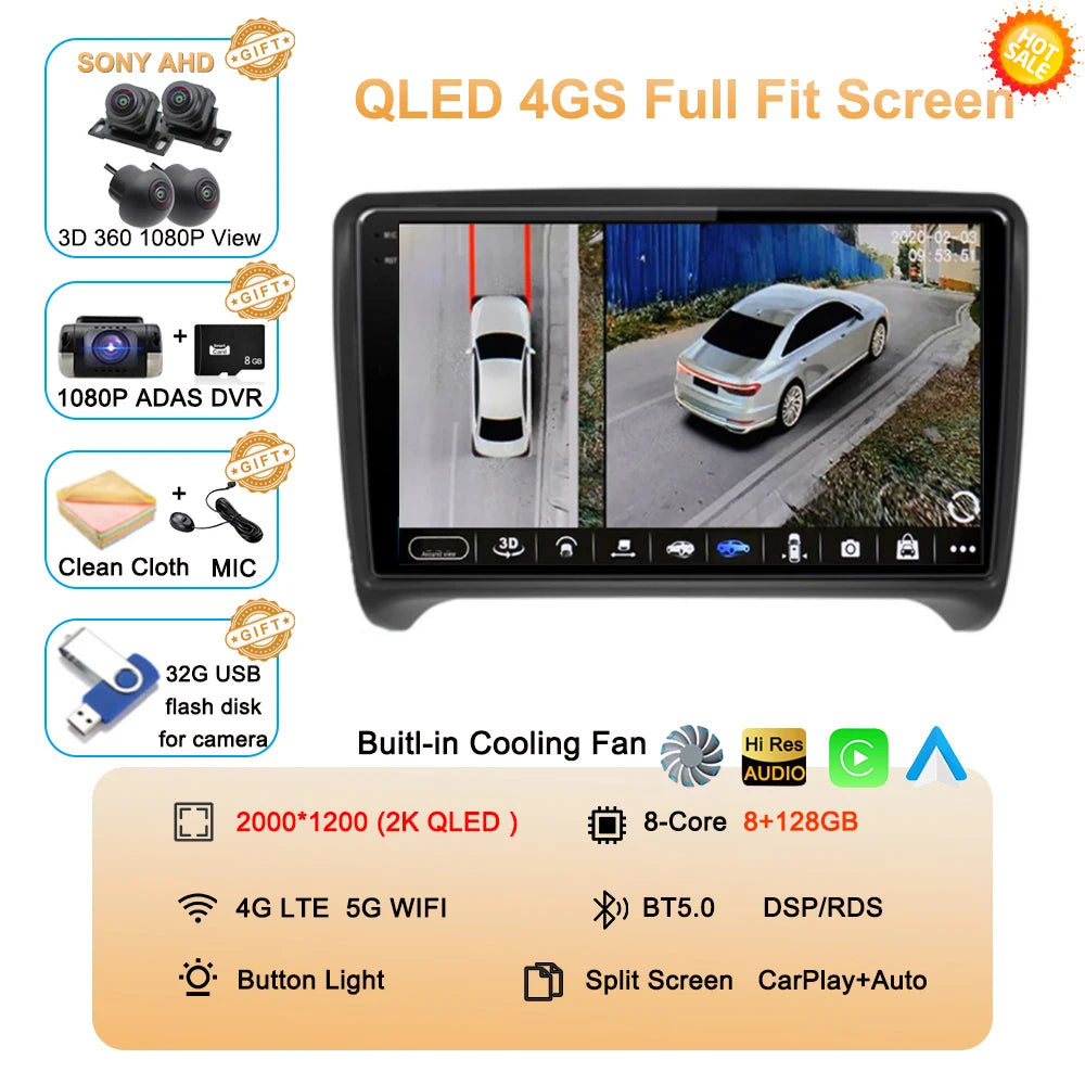 Carplay Auto Android 13 2 DIN Intelligent System For Audi TT MK2 8J 2006 - 2014 Car Radio Multimedia Player WIFI Stereo GPS QLED