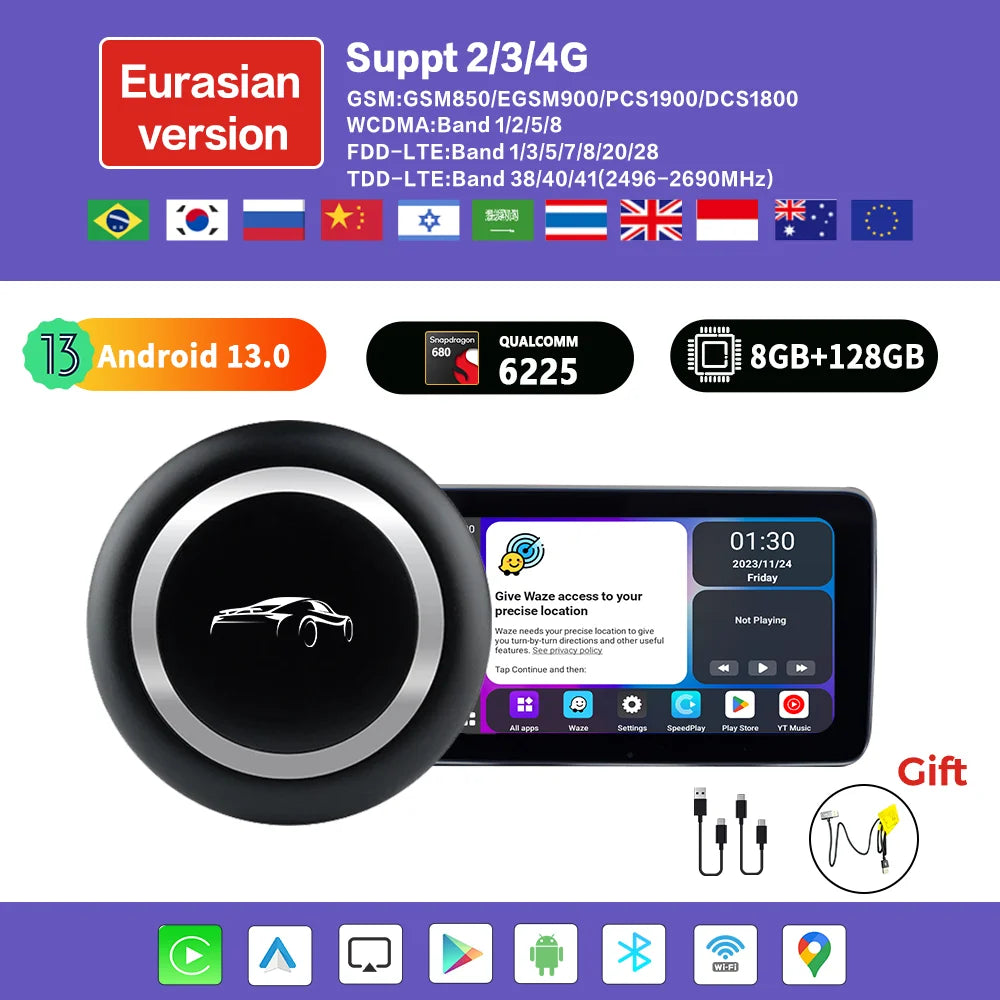 QM8 680 can transform the original car's Apple Carplay into Android 13.0 system, supports wireless CarPlay/wireless Android Auto/wireless mirroring, and supports 4G Sim card network. One product allows you to enjoy more functions